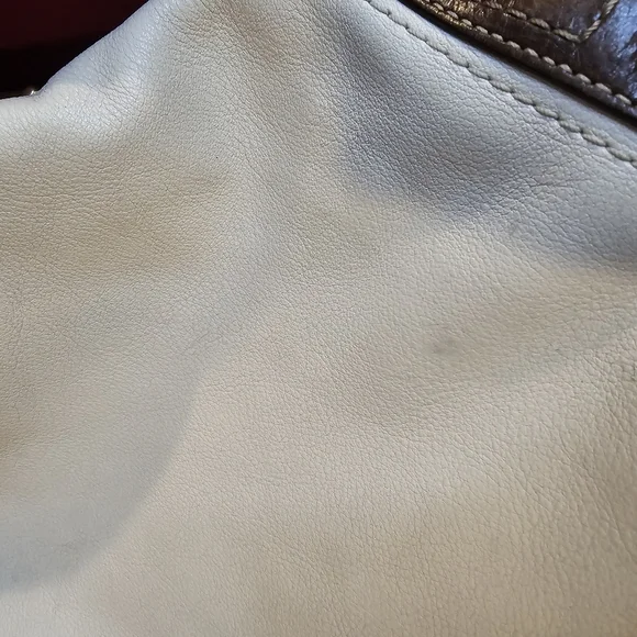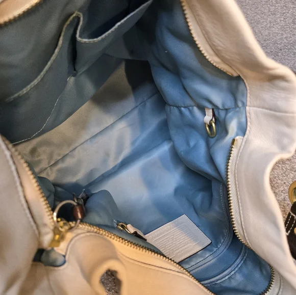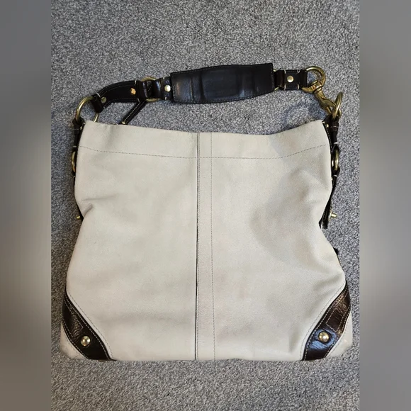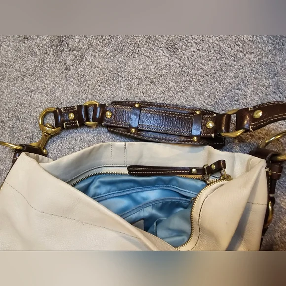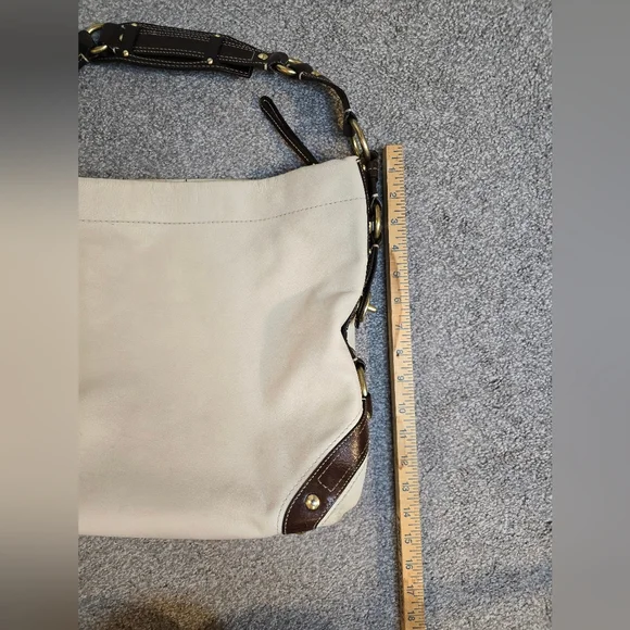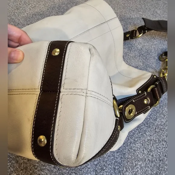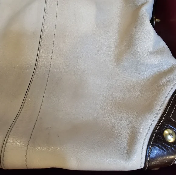 This is a beautiful pre-loved Coach hobo bag. The inside is beautiful with a couple of light spots on the botto. The outside leather has several black marks, and the bottom corners have normal wear. I have tried to photograph the imperfections. Please see photos prior to purchasing. I have not given her a bath or tried to remove any of the spots. Overall, this is a gorgeous bag looking for a new home!