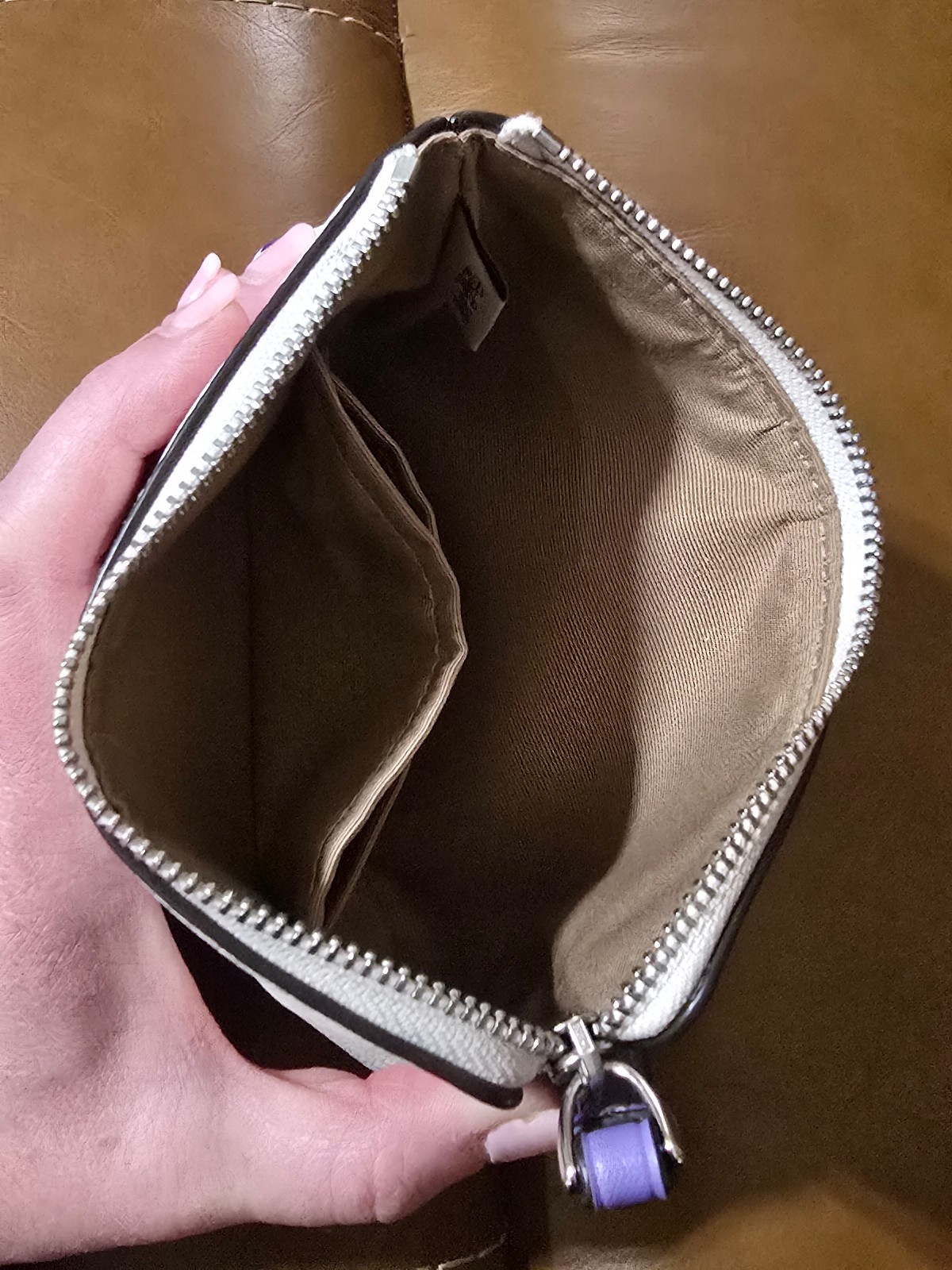 The Coach Corner Zip Blueberry with White Signature Logo Pouch Wristlet is a stylish and functional accessory for women. Made from coated canvas, this multicolor pouch wallet features the iconic Coach signature logo. Its convenient wristlet style makes it easy to carry around, perfect for storing essentials on-the-go. With the trusted Coach brand, this pouch wristlet is both fashionable and practical for