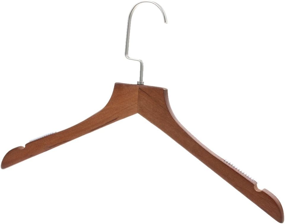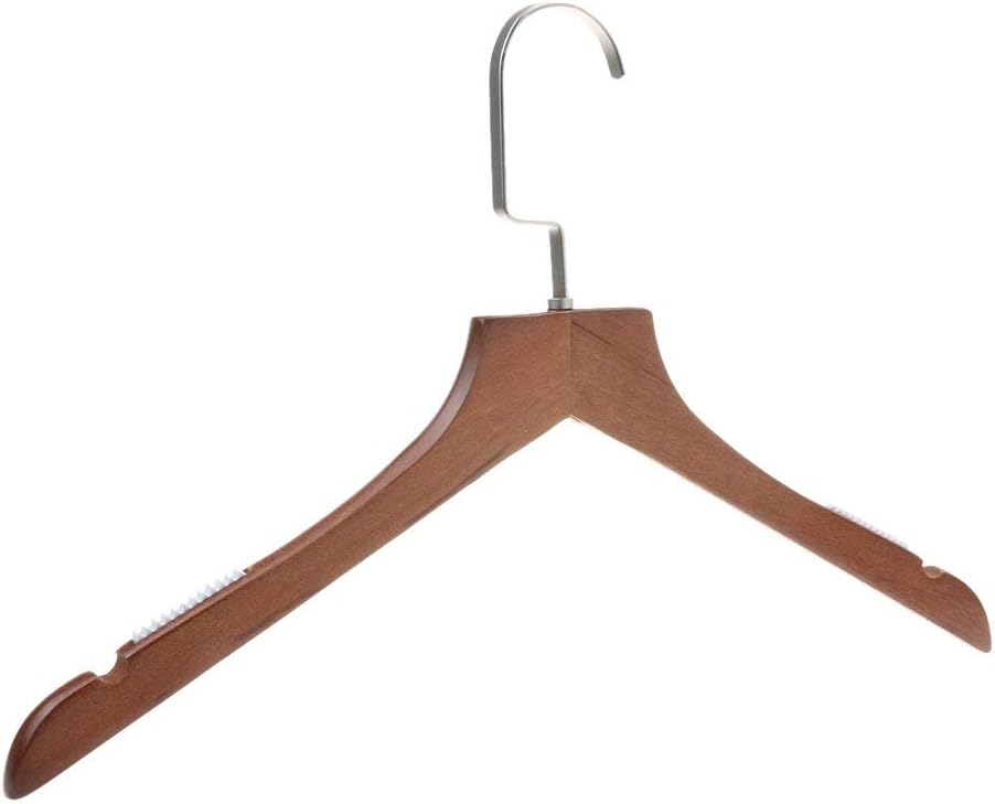 Description: - Solid wood with natural finish, strong and durable enough. - Polished chrome swivel hook. - Padded clamps. - Smooth lacquered. - Elegant and stylish design with notched shoulders for straps, hanging dresses and so on. Specifications: - Material: wood - Length: 39 cm / 15.21 inches Package includes: Pack of 10 hangers