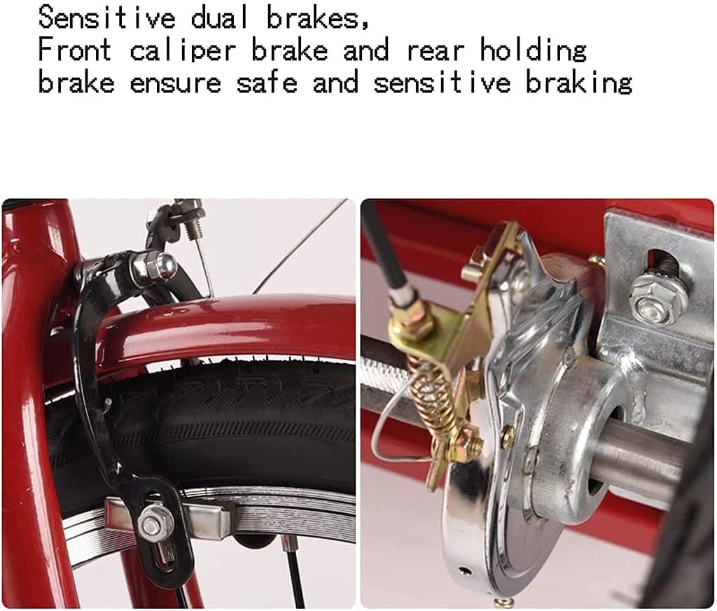 ※(. ? ? ?)※ Bicycle is the best gift for parents and family. Your wife can use it to pick up and drop off children. ※(. ? ? ?)※ Please note: You need to install it yourself, the installation is relatively simple, you can contact us if you have any questions. Since the tricycle is a large product, the product may be slightly scratched during transportation. If you mind, please don't buy. Parameter: Wheels: 20 inches Speed: 6 speed Size: 168x70x106cm Suitable for riders: height/weight 140-180cm/160kg e: high-hardness steel thickened e Handlebar: Aluminum Saddle: Comfortable leather saddle Fork: 20-inch carbon steel front fork Crankset: 32-cone roulette Chain press: multi-function press Rim: Aluminum alloy Tires: Anti-skid tires Brake: special brake for tricycle Pedals: high wear-resistant pedals Flywheel: 6-speed flywheel Bottom shaft: sealed bottom shaft Advantage: 1. Large and comfortable seat and backrest 2. The large-capacity folding iron basket is used to store supplies. The size of the shopping basket is 40x40x25cm. 3. The sturdy steel structure supports the rider's weight up to 160kg 4. The big wheels with mudguards keep them clean and dry 5. Ergonomic rubber handle, comfortable feel 6. The upholstered seat with spring makes you feel more comfortable Packing list: adult tricycle Note: You have to install it yourself, but don't worry, it's easy ※(. ? ? ?)※ You can contact us at any time if you have any questions in the process of buying products, we will ask you to answer your questions, and hope that you have a happy shopping and bring you a happy shopping experience!