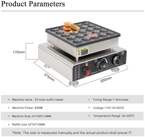 Discover the ultimate kitchen companion with our Modern Food-Grade Stainless Steel Muffin Machine, designed to elevate your baking experience. Whether you’re a baking enthusiast or a busy parent, this versatile countertop appliance is perfect for creating delicious muffins, cupcakes, and more in no time. Featuring a non-stick coating, our muffin machine ensures that your baked goods come out perfectly every time, allowing for easy release and minimal cleanup. With the capacity to bake 25 or 50 delightful treats at once, you can effortlessly cater to family gatherings or parties. The powerful heating tube provides consistent heat distribution, giving you perfectly baked results within a temperature range of 50-300℃ (122-572℉) and a timing range of 1-5 minutes. Safety and stability are prioritized with four anti-slip feet that keep the machine securely in place during use, reducing the risk of slipping or tipping. The included practical whisk ensures your batter is mixed evenly, while the two brushes allow for an even application of oil, enhancing the flavor of your desserts. Easy to use and install, this muffin machine requires no assembly and features a 1.2m power cord for convenient placement in your kitchen. Simply preheat for 15 minutes, apply a light coating of cooking oil, and you're ready to bake! Note that this product does not include food and may require slightly longer warm-up time during initial use. Transform your baking routine with this efficient muffin machine and enjoy homemade treats with ease. It's the perfect addition to any kitchen, offering both functionality and modern design!