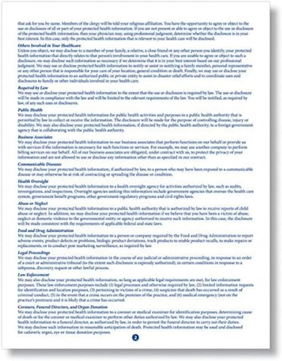 The HIPAA Notice of Privacy Practices Form by ComplyRight is an attorney-approved form that healthcare providers and other covered entities must give to the patients under HIPAA regulations. Written in simple and plain English, the HIPAA privacy notice describes how protected health information may be used and disclosed, an individual's rights concerning the information, a provider's legal duties with respect to the health information, and who the individual can contact for more information. This attorney-developed form meets all HIPAA required elements for notice of privacy practices. It comes in a pack of 100 and each sheet measures 11” x 17”.