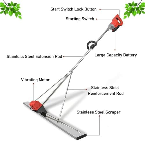 The Electric Cordless Screed Cement Leveling Tamper Ruler is an essential tool for achieving professional-quality concrete surfaces with ease. Designed for both DIY enthusiasts and construction professionals, this versatile tool simplifies the process of pouring and leveling cement for various projects, from home renovations to large-scale engineering tasks. Key Features: - **High-Powered Performance**: Equipped with a high-frequency vibration engine and a pure copper motor, this screed delivers exceptional results, ensuring a smooth and even finish every time. - **Durable Design**: The water-resistant and dustproof aluminum alloy housing promotes quick heat dissipation, enhancing the tool's lifespan and durability, even in tough conditions. - **Versatile Blade Options**: Choose between 100cm and 120cm blade lengths to suit your specific project needs, making it adaptable for different surfaces and applications. - **Enhanced Scraper Quality**: The thickened and widened stainless steel scraper is designed for superior wear and corrosion resistance, ensuring longevity and reliability in your concrete finishing tasks. - **Stable Operation**: A triangular fixed structure guarantees stability during use, allowing for precise leveling without the worry of tipping or uneven surfaces. - **User-Friendly Design**: Featuring an ergonomically designed handle with non-slip and anti-vibration properties, this tool ensures comfort during extended use. The easy-to-use button simplifies operation, making it accessible for users of all skill levels. Specifications: - Product Name: Electric Concrete Finishing Tool - Material: Stainless Steel - Weight: 7kg - Battery Capacity: 6000mAh - Speed: 3000-6000 RPM - Power: Brushless Motor - Scraper Size: 1m x 8cm or 1.2m x 8cm Included in the Package: - 1 x Machine Head - 1 x Motor - 2 x Batteries - 1 x Charger - 1 x Installation Accessories - 1 x Leveling Rule - 1 x Installation Rod - 2 x Allen Wrench - 1 x User Manual Transform your...