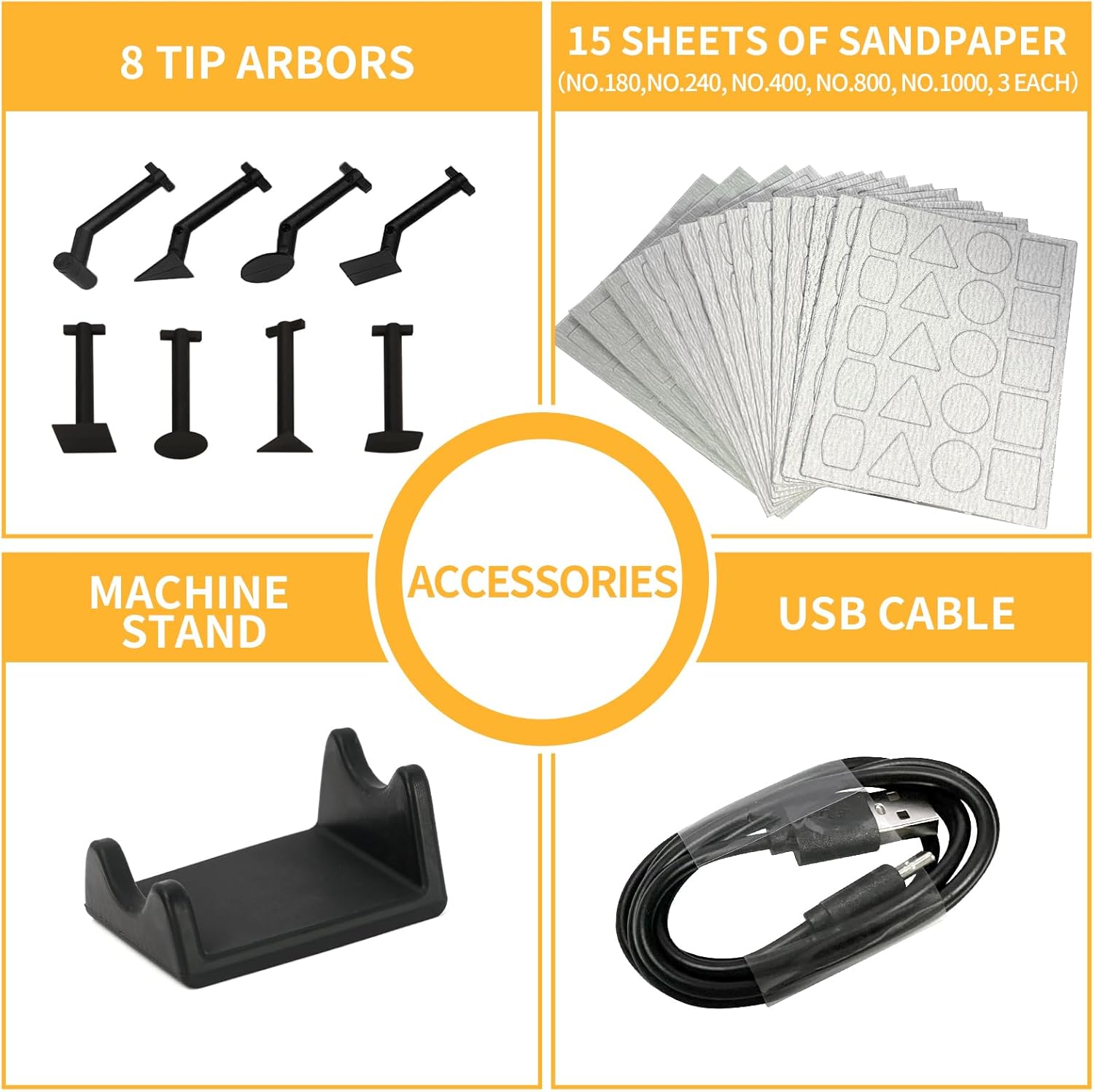 | Included Components | pen sander, stand, 8 grinding head, 15 sheets of sandpaper |