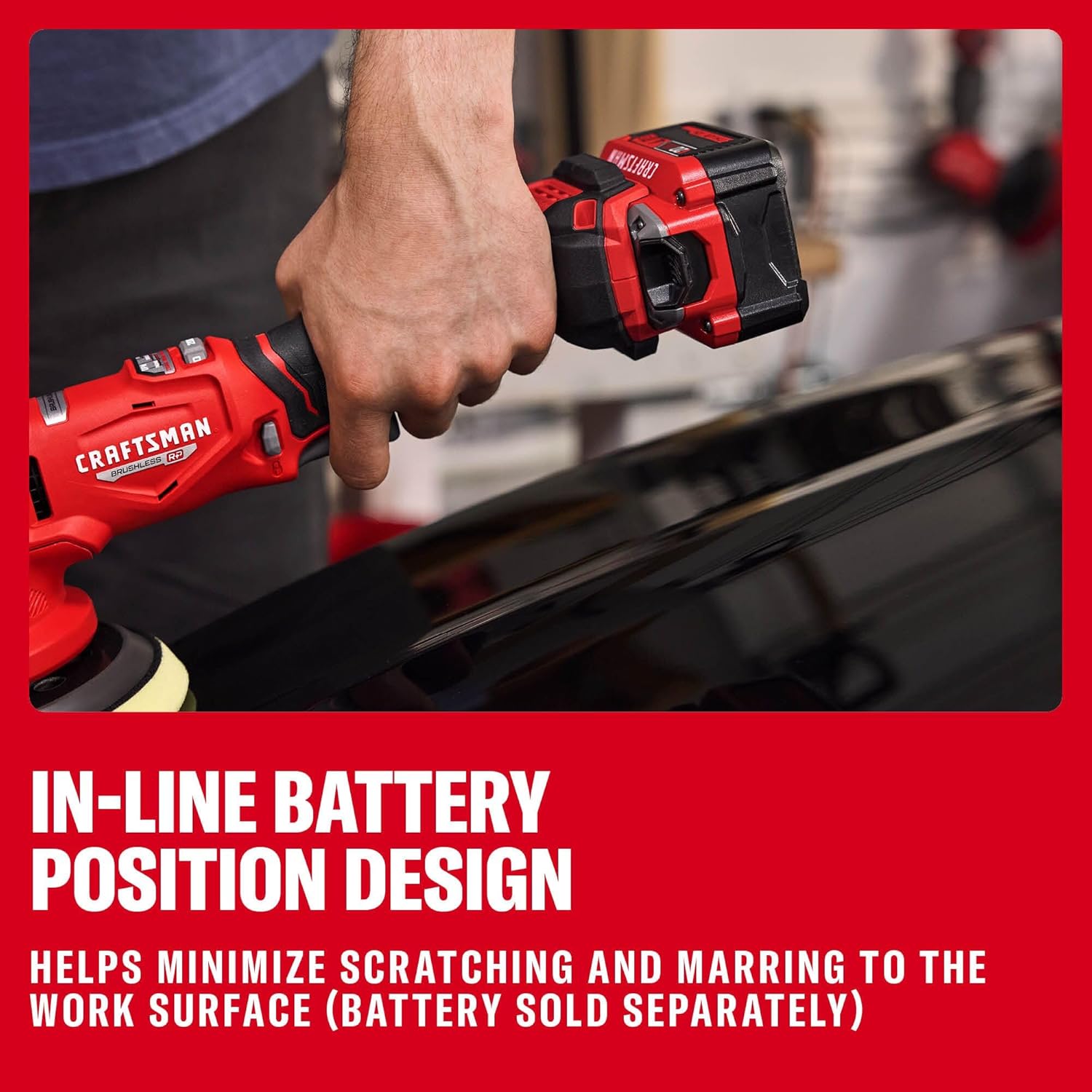 Get a professional polish for a wide range of applications with the easy-to-use V20* Brushless RP 5 in. Dual-Action Polisher (battery and charger sold separately) that delivers reliable results for DIY automotive detailing. Designed to maintain a constant speed under load*, this polisher's powerful brushless motor keeps you going strong throughout your job. Stay in control and achieve an even finish with a dual-action orbit and variable speed trigger. Featuring an in-line battery position design that helps minimize scratching and marring to the work surface, the V20* Brushless RP 5 in. Dual-Action Polisher will be right at home in your garage.