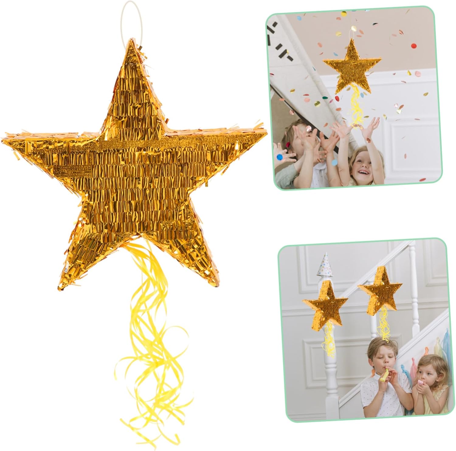Package Include 1 x Five-Pointed Star Pinata Characteristics - Size: About 45.00X44.00X10.50cm/ 17.68X17.29X4.13inch Pinata Decor. - Material: Paper star decoration. -Product Info:Pentagram Pinata - Color: Golden Party Pendant. -This creative pinata is great for an upcoming ' birthday party, bridal shower, Eid party, or special event Party Pinata. -The pinata can help you to and bad emotion. Suitable for household party use Party Pinata Decor. -Easily fill with such as candies, chocolates, mini , or confetti Decorative Pinata. -Fine craftsmanship and creative outlook, festival and shinning. will love it party decorations. -The pinata can impress your guests with a fun theme and party game. You deserve to have one carnival pinata.Goods Informationpiñata decoration You also can use it as a hanging pendant, bring a warm and cheerful atmosphere to your home.stars decorations Impress your guests with a fun theme and party game, this pentagram pinata is great for an upcoming birthday party, bridal shower, shower, or special event
