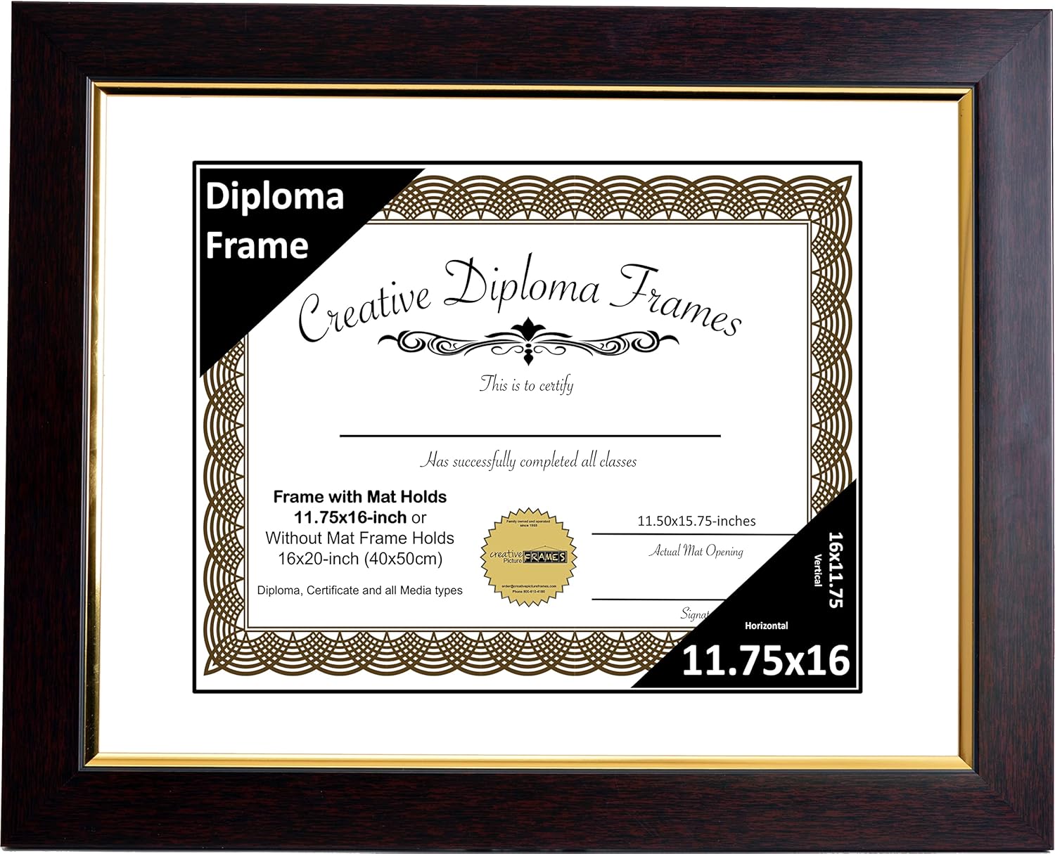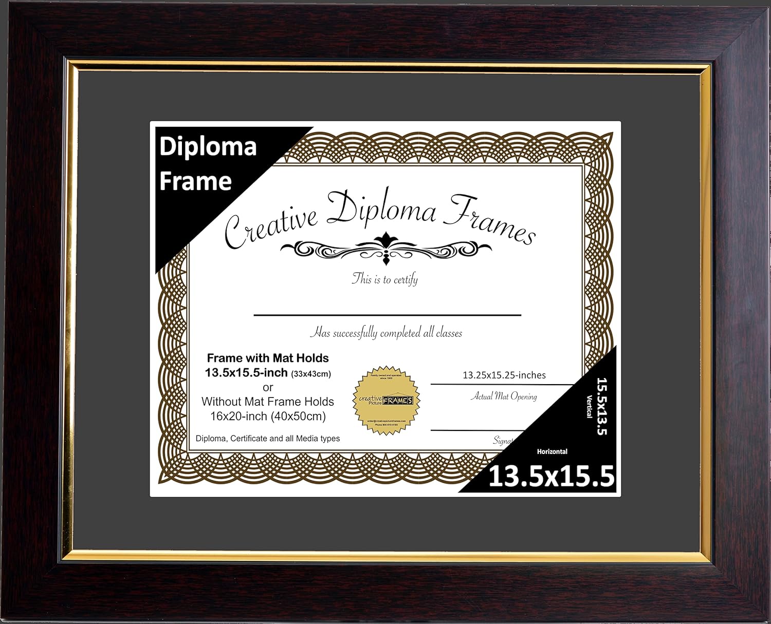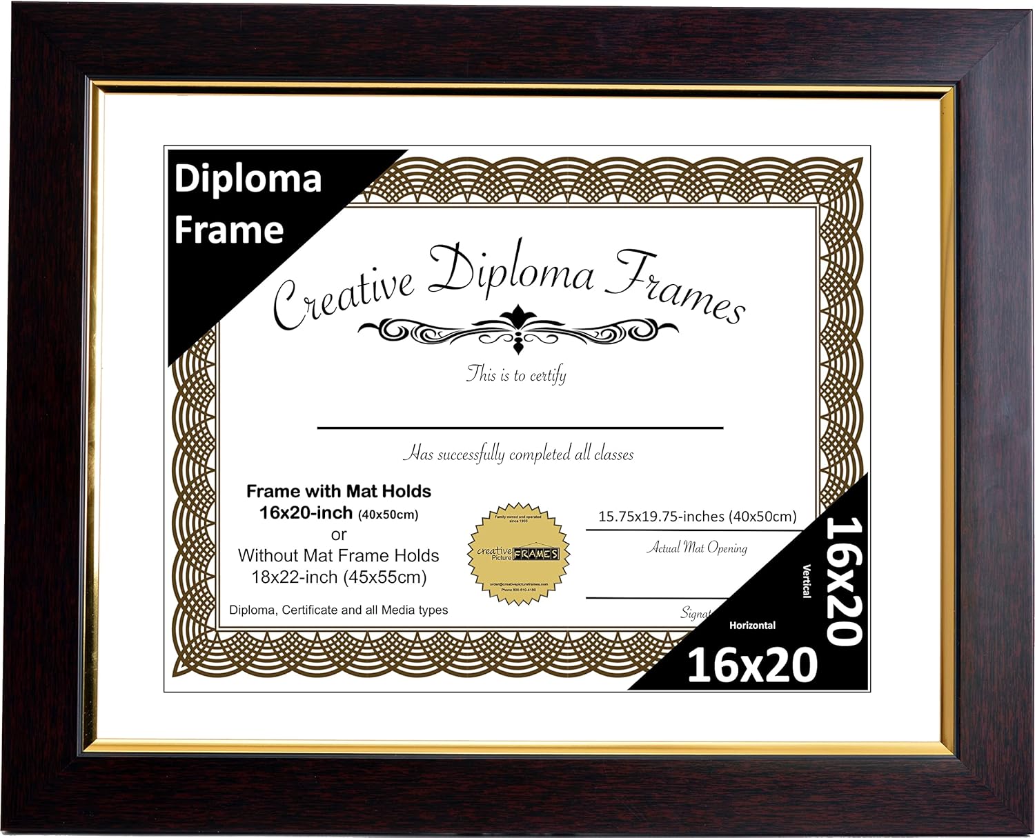 CREATIVE PICTURE FRAMES are proudly made in the US since 1903. We are family owned and specialize in designing new and creative picture frames for business, office and home. They include manufactured eco-friendly molding, full strength glass or scratch resistant acrylic with hanging hardware. If you have any questions, please don't hesitate in contacting us. With our 100% Satisfaction guarantee you can buy with confidence knowing your new frames were built to last a lifetime. Drop us a line if you have any questions, Thank you