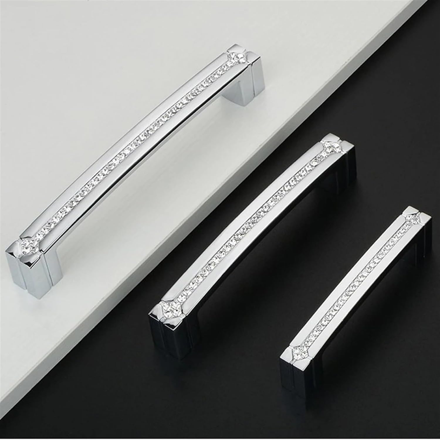 Drawer Handles & PullsCrystal Glass Diamond Furniture Handles Wardrobe Drawer Knobs Kitchen Cabinets Cupboard Dresser Sliding Door Pull HandleProduct Description Material:zinc alloy, crystal glass diamondsHollow/Solid: SolidColor: chromeHole spacing:96mm,128mm,160mmApplicableThis handle is suitable for cabinet,drawer,dresser,cupboard, closet, small door,furniture etc