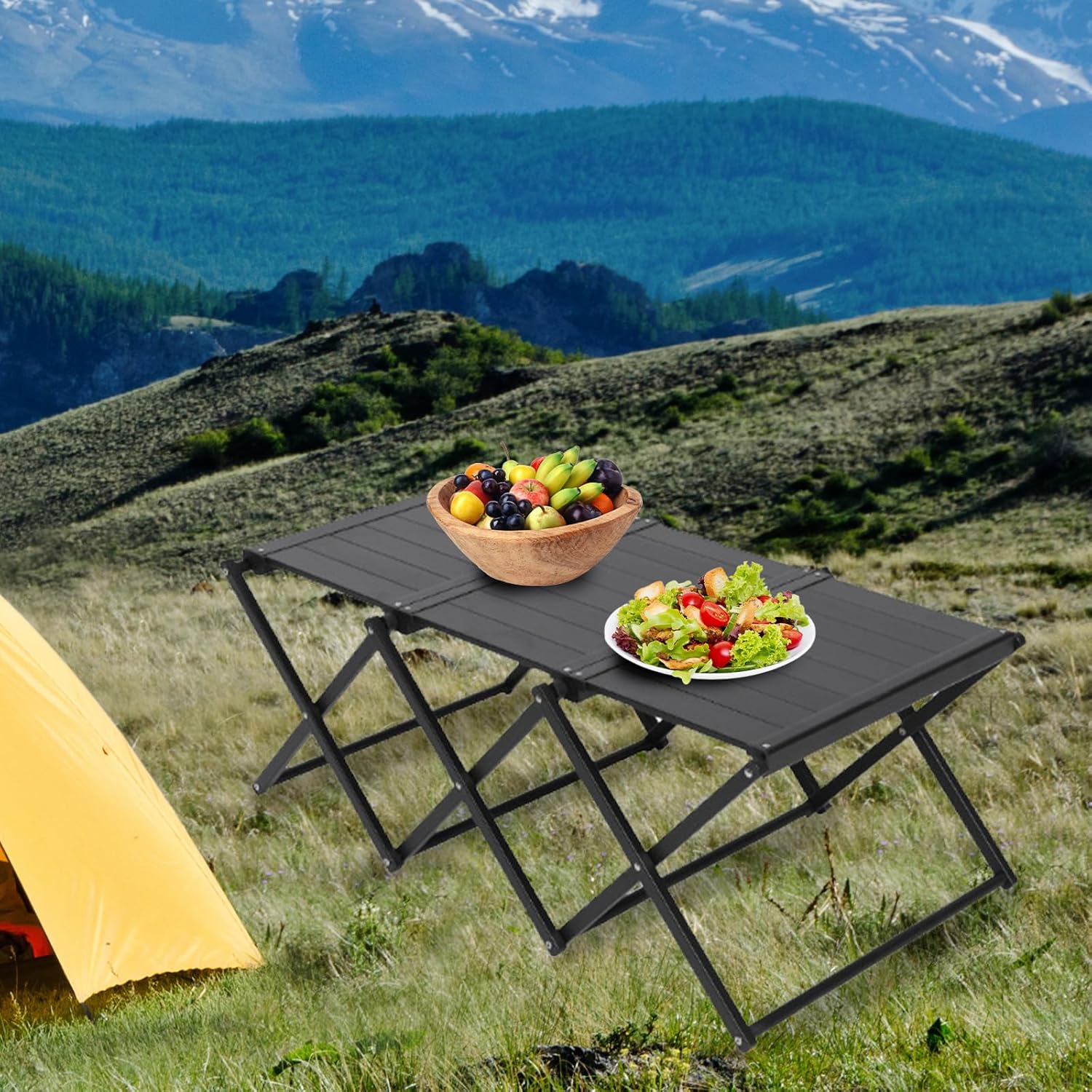 2 in 1 Folding Shelf Storage Rack, 3-Tier Heavy Duty Foldable Metal Rack Storage Shelving Unit, Aluminum Alloy Organizer Shelves with Carry Bag for Kitchen Camping PicnicFeatures:This 2 in 1 Folding Shelf Storage Rack stands out with its modular combination innovation. Beyond the basic 2 - in - 1 folding modes, the individual tiers are designed as detachable modules. You can disassemble the 3 - tier structure and stack the tiers side by side to create a wide, low - profile storage surface, or use them separately in different areas of your home or outdoor space. Moreover, the rack is compatible with optional add - on modules like hooks for hanging utensils, or baskets for organizing smaller items. This modularity allows you to customize the storage solution according to your exact needs, whether you're arranging a complex kitchen storage system or setting up a multifunctional camping station, providing endless possibilities for efficient organization.Designed with stable and non - slip details in mind, this foldable metal rack ensures the safety of your items. Each tier is covered with a textured, non - slip rubber mat that prevents items from sliding around, even when the rack is jostled during transportation or in use. The feet of the rack are fitted with adjustable anti - slip pads, which can be extended or retracted to adapt to uneven surfaces, whether it's a slightly slanted kitchen floor or a rough camping ground. The connection points between the tubes and tiers are reinforced with anti - vibration washers, reducing noise and enhancing stability when the rack holds heavy loads. These thoughtful details provide peace of mind, knowing that your stored items are secure at all times.Description:Item Name: 2 in 1 Folding Shelf Storage RackMaterial: AluminumColor: BlackSize: As shown in the picturePackage includes: 1 pcs 2 in 1 Folding Shelf Storage RackNote:Due to different light and screen settings, the product color may be slightly different from the picture.Please allow slight size differences due to different manual measurements.Please contact us if you have any questions about this product.