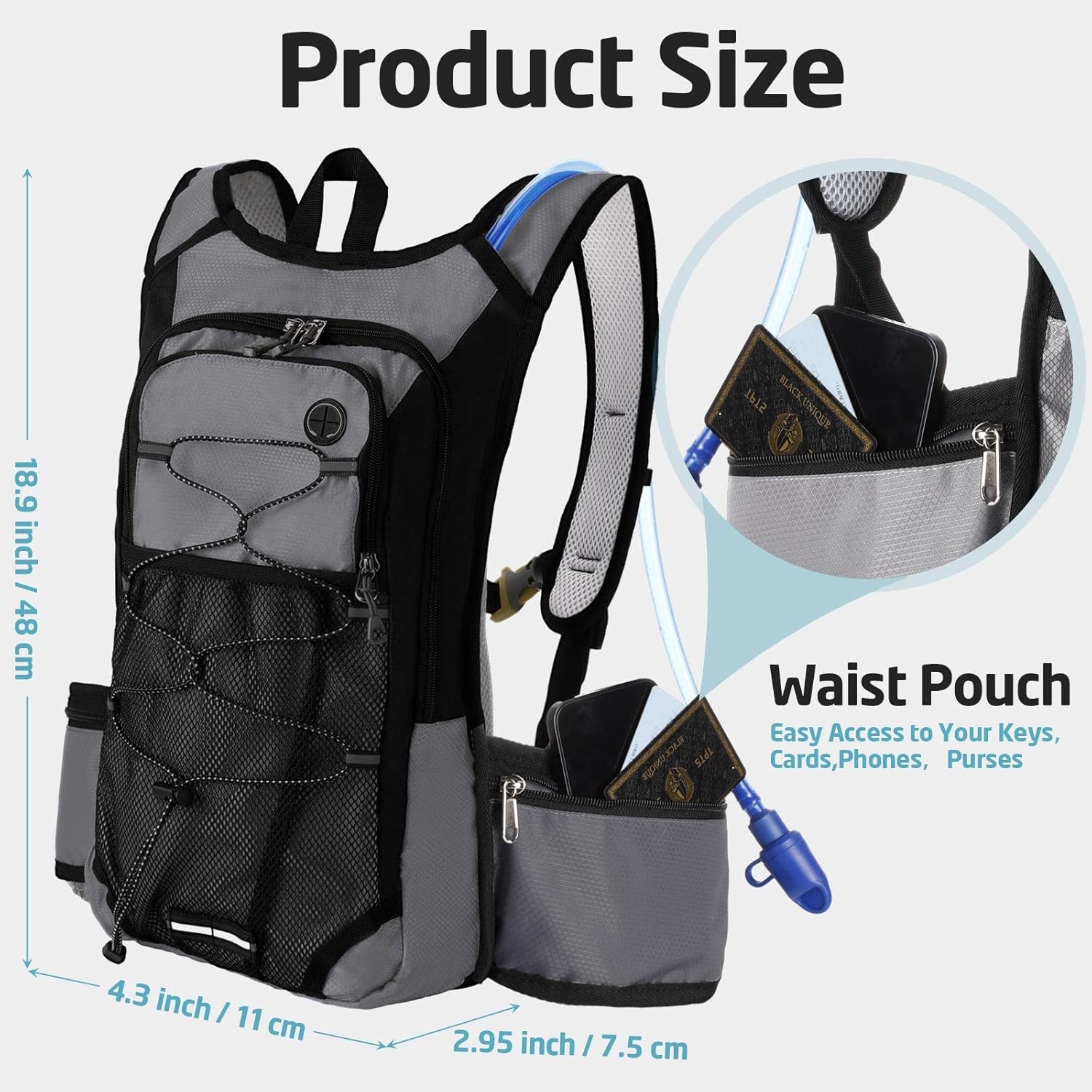 Features: Our insulated hydration pack is ideal for you to send to your family members, colleagues and more. They will feel your concern and love, and your relationship will be improved. There are 2 main colors for the running backpack for men and women, including light blue and grey, versatile and can easily match your various outfits, bringing you a nice and satisfying experience. Specifications: Material of water bladder: EVAMain color of insulated hydration backpack: light blue and greySize: as pictures shownCapacity of water bladder: approx. 2LPackage includes: 2 x Insulated hydration backpack 2 x Water bladderNotes: Manual measurement, please allow slight errors on size. The color may exist a slight difference due to different screen displays.