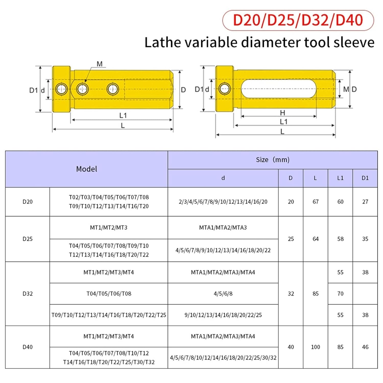 Angle Milling CuttersD20 D25 Turning Tool Sleeve For Lathe Internal Hole Machining Arbor Boring Cutting-off Holders 1Pcs==========Certification : noneHardness : HRC45-49Usage : tool SleeveOrigin : Mainland ChinaModel Number : D20 D25Material : Tool steel