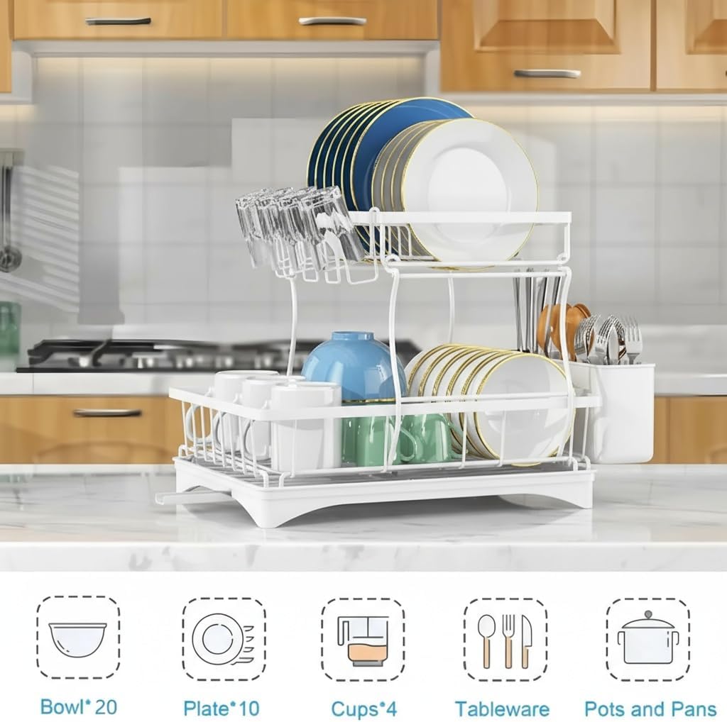 Keep Your Kitchen Tidy & Efficient – Without the Clutter🍽️✨ Say goodbye to soggy benches and disorganised drying dishes. This thoughtfully designed dish rack gives your kitchen a helping hand, whether you’re tackling the daily pile-up or hosting a weekend gathering. Built sturdy to handle heavy plates🥘, bowls🍚, and glasses🍷, it keeps everything securely in place while water drains away neatly—no more wiping up puddles. The compact shape fits even small kitchens, yet holds plenty, so you can wash, dry, and put away without the hassle. Perfect for: ✔ Busy households – No more juggling wet dishes on the counter. ✔ Entertainers – Easily dry wine glasses and serving platters after a BBQ. ✔ Small kitchens – Maximises bench space without sacrificing function. Simple, practical, and built to last—just set it up and let it do the work.🏡