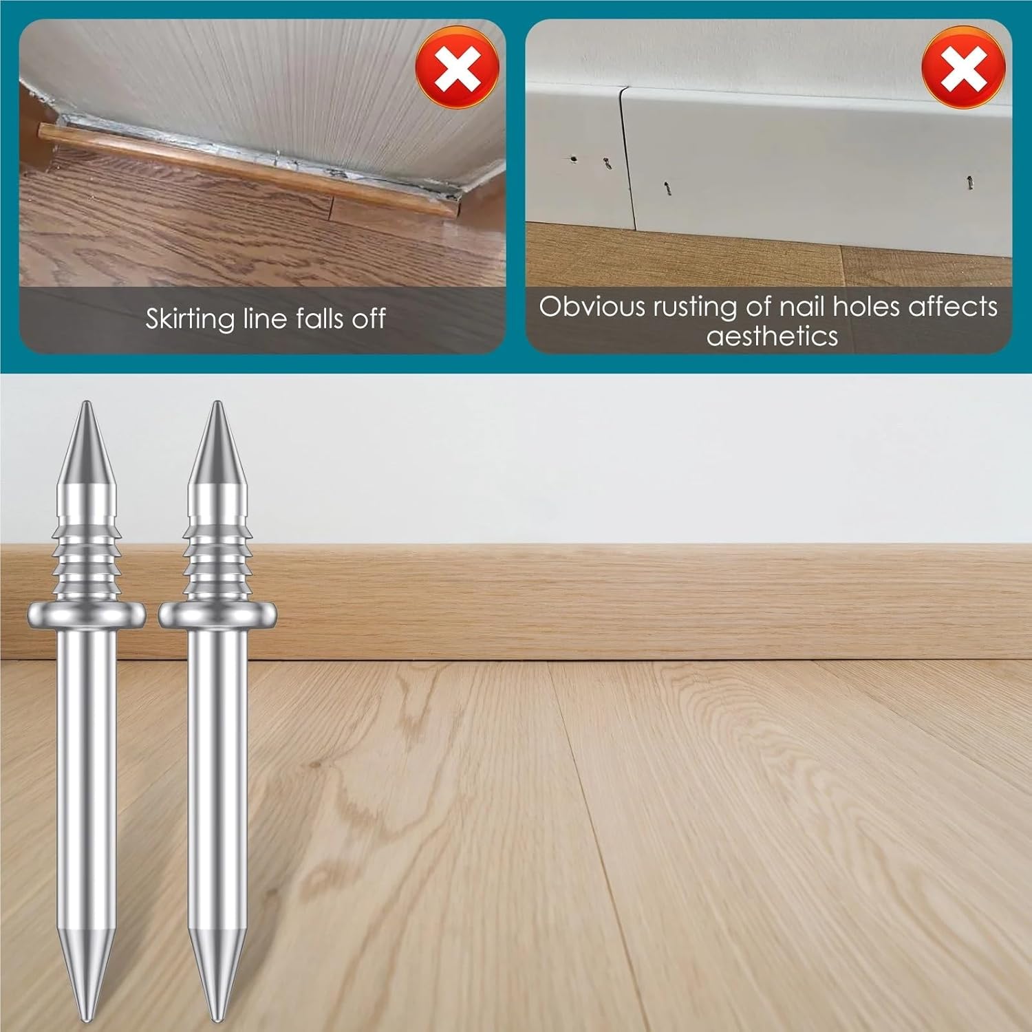 Installation Guidance for Optimal Flush Finish: Drive nails using the included sleeve tool until the head seats just below the material surface; for best results, maintain steady pressure and keep the driving tool aligned straight with the nail shaftProduct Name: Double-Head Skirting Thread Seamless NailMaterial: MetalSize: Diameter: 0.25cmLong Nail Length: 1.7cmShort Nail Length: 0.85cmType : Finishing NailDIY Supplies : WoodworkingMaterial : SteelParts List:500800/1000×Nails5/8/10×RodsNotes:1.Installation requires that the thickness of the skirting line is greater than 10mm.2.At the intersection of the two skirting line, try to fix a nail as close to the intersection as possible.3.There may be slight differences between the picture and the actual color of the commodity. We will try our best to show you the exact color.4.Please allow slight dimension difference due to manual measurement.