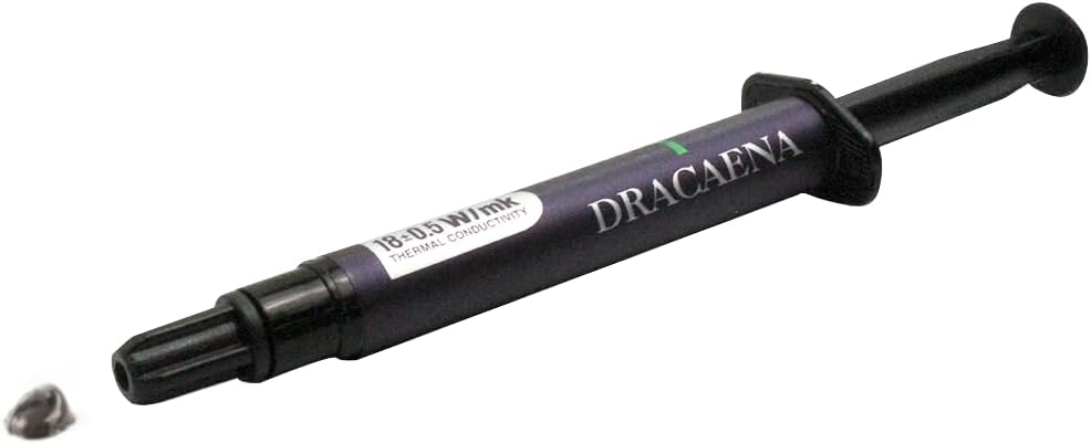 Dracaena CTG12 Thermal Paste is a high-performance, non-conductive thermal grease designed for efficient heat transfer in CPUs, GPUs, mining hardware, and power modules. Featuring a thermal conductivity of 18 W/m·K, it rapidly transfers heat to the heatsink to help reduce thermal throttling under sustained workloads. Each unit is supplied in a 4g syringe, featuring a non-curing, easy-to-apply formula that allows clean spreading and re-work. CTG12 offers ultra-low evaporation (<0.5% at 150°C), stable performance across a -40°C to 150°C temperature range, and reliable electrical insulation. Available in 5-pack and 10-pack options, it complies with ROHS and REACH standards and is suitable for both consumer and professional electronics applications.