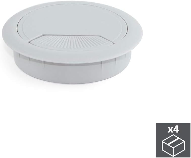 Round grommet designed to be built-in in desks/tables/worktops/counters which is an excellent way not only to keep cables of the electronic devices (computer, printer, fax, etc.) under control but also to avoid them to mess around. They are made of grey plastic and are provided in sets of 4 pieces. Installation needs a previous Ø80mm drilling hole. Discover the full range of Emuca's products at our Amazon Store: www.amazon.co.uk/emuca