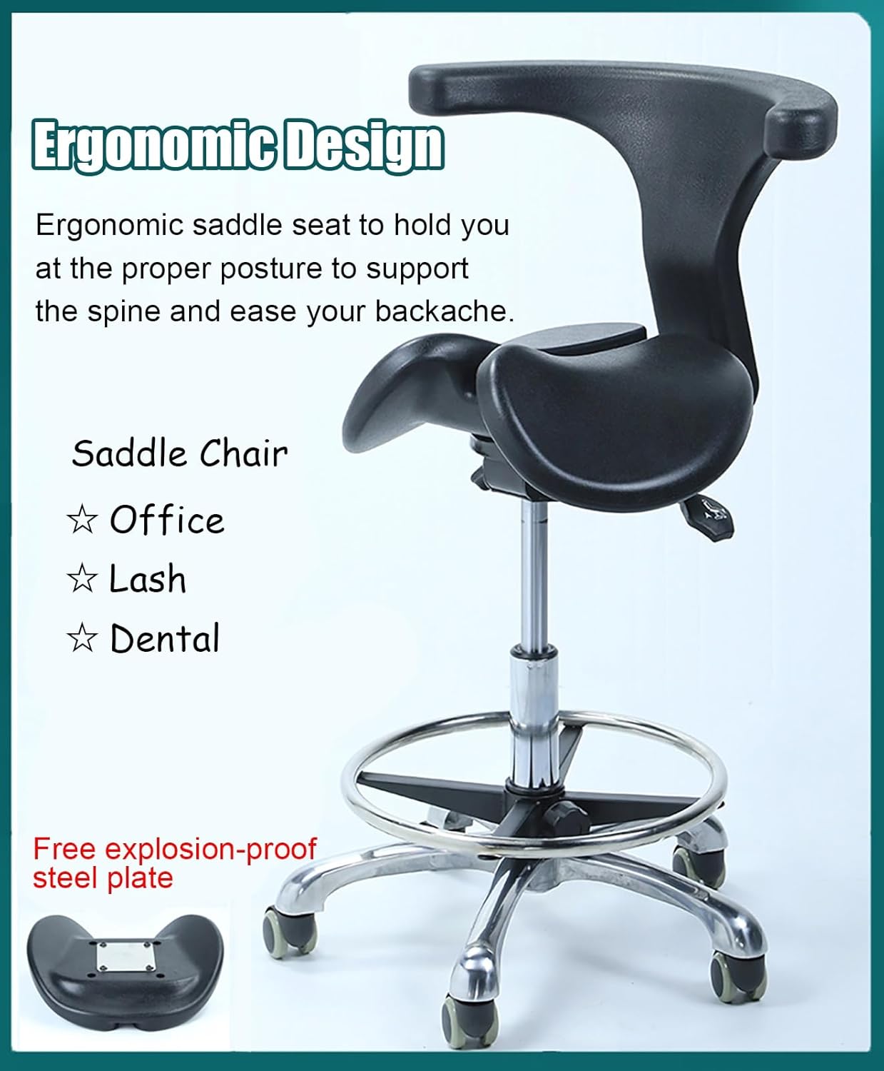 Heavy Duty Stainless Steel Massage Stool:The Saddle Chair is designed to enhance your comfort and productivity throughout your busy day. This ergonomic chair promotes better posture, making it an ideal choice for anyone who spends long hours at a desk, in a kitchen, or behind a counter. **Product Components:** - Saddle Chair x 1 - Rolling Wheels x 5 **Specifications:** - Color: Black - Weight Capacity: 150kg (330lb) - Adjustable Height Options: 50 - 64cm (19 3/4 - 25 1/4"), 55 - 75cm (21 5/8 - 29 1/2"), 60 - 86cm (23 5/8 - 33 7/8") - Base Diameter: 56cm (22") - Base Type: Durable Metal **Key Features:** - Effortlessly glide around with smooth-rolling wheels. - Water and oil-resistant surface that is also abrasion-resistant for longevity. - Lightweight design allows for easy assembly and convenient storage. - The saddle-shaped cushion is crafted to contour perfectly to your body. - Sturdy base and gas lift mechanism accommodate users up to 330lbs. - Height adjustments are simple and intuitive with a hand lever, adapting to your needs. **Important Notes:** - Avoid using corrosive cleaners on the base and cylinder. - Manual measurements may result in slight variations. - Color discrepancies may occur due to monitor settings; please refer to the actual product. **Worry-Free Purchase:** We are committed to customer satisfaction. If you experience any issues with your Saddle Chair, please reach out to us for assistance. Enhance your workspace with this versatile Saddle Chair, perfect for kitchens, bars, tattoo studios, and more. Enjoy a blend of comfort and style, all while promoting better posture for a healthier work environment.