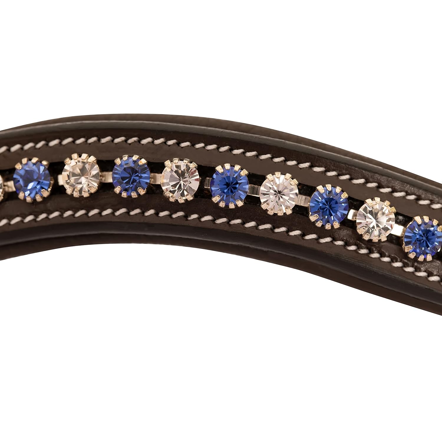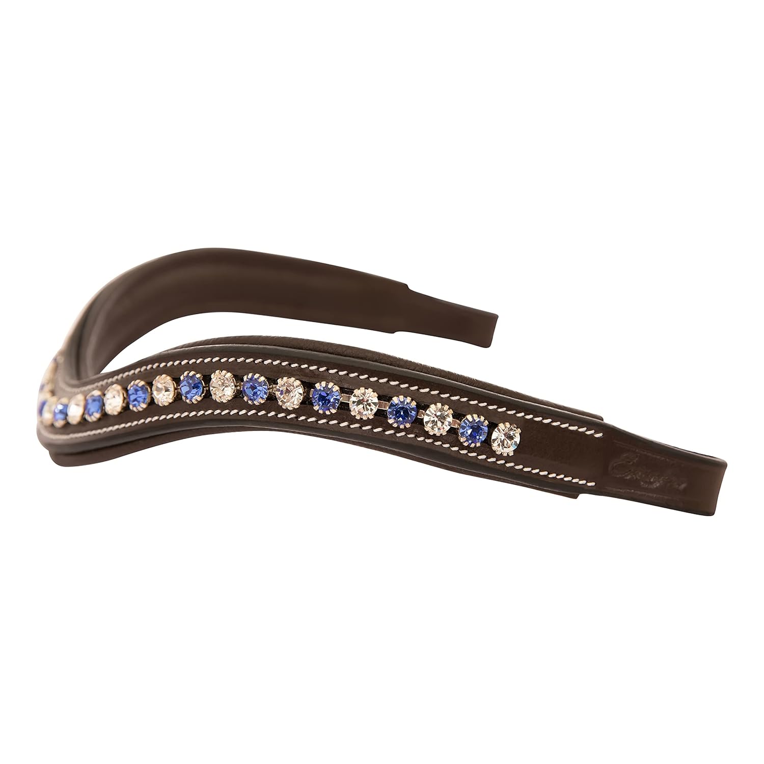 ✨ Add Elegance & Comfort with the Exion Curved Crystal Browband for HorsesDesigned for riders who demand both performance and luxury, this soft padded leather browband features a sparkling crystal centerpiece to turn heads in the show ring and provide day-to-day comfort.💎 Elegant Crystal Chain Design Shimmering linked crystals provide a touch of glamour. This bling horse browband is perfect for dressage browbands, show jumping, and all English disciplines.🧠 Deep U-Curve Ergonomics The curved shape eases pressure across your horse’s forehead, reducing distractions and increasing comfort for longer rides.☁️ Ultra-Soft Padding The padded underside ensures a gentle touch against the skin—ideal for horses with sensitive foreheads or thin hair.🧵 Premium Craftsmanship Crafted with vegetable-tanned, drum-dyed leather, and detailed with fancy stitched leather for a high-end look and durability. A beautiful match for browbands for horses with bling.📏 Size Options Pony / Small: 13.5" (34 cm)Cob / Medium: 14.5" (37 cm)Full / Horse: 15.5" (39 cm)Over / Warmblood: 16.5" (42 cm)🎨 Leather Shades: Classic Black, Havana Brown, Reddish Oak Brown🔄 Fits Standard English Bridles Compatible with all bridles up to 1” wide crownpieces—ideal for dressage browband for horses, bling browband for horse bridle, or show tack.Whether you’re schooling or showing, the Exion Browband offers standout looks and all-day comfort—making it the perfect brow band for horses.