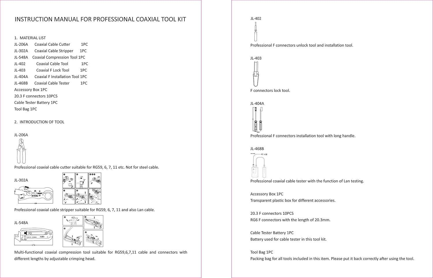 | Specific Uses For Product | installing satellite TV dish/CCTV, moving cable TV and cable modem, cable termination |