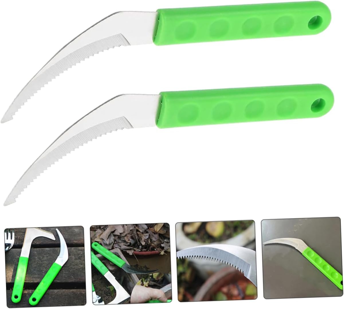 Package List 2 x Sickles Features -Size:20.00X4.00X1.00cm/7.86X1.57X0.39in steel -Color:Green grass cutting tool -Material:Stainless steel, plastic garden tool - Exquisite workmanship and details ensure its popularity. And, the is portable and light, easy to carry gardening . - The is made of sturdy materials, safe and practical for long-lasting using time farm . - Although the design is simple, it is very practical, labor-saving and light. It is a helper for your garden serrated . - Multi-functional use, the is suitable for gardens, plants, outdoor and other places with handle. - Ergonomic design, labor-saving and time-saving, bringing you a comfortable experience weeding grass .Goods Informationsteel This item is a practical garden , manufactured with stainless steel, plastic material, so that it can serve you for many years.weeding grass Stainless steel, plastic material can ensure its durability and practicability.safety sickles It is for reaping, weeding or gardening