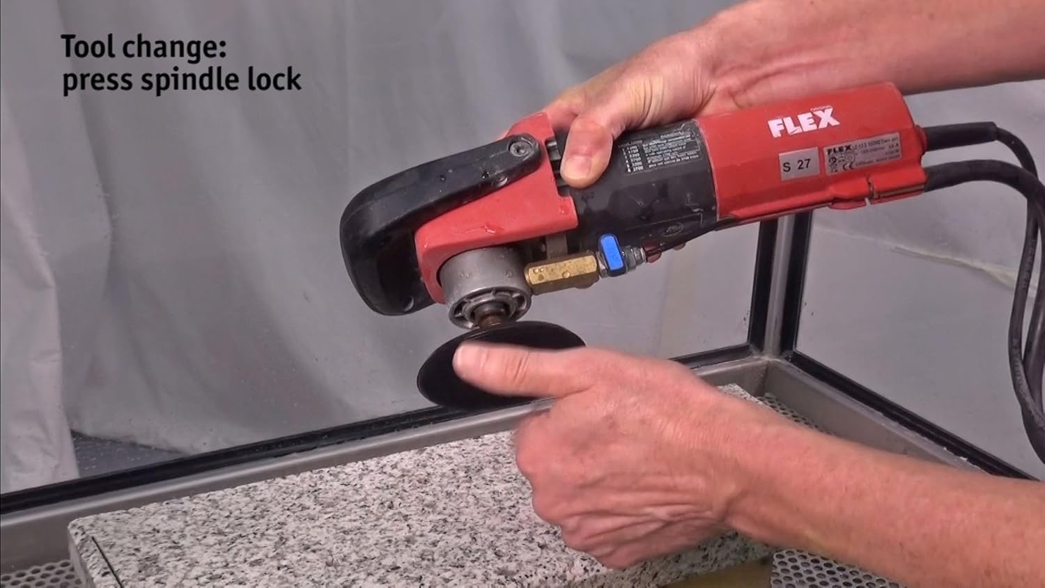 From the Manufacturer The Flex LE 12-3 100 Wet variable speed polisher includes many new features. New electronics provide soft start, overload protection, and constant speed control within the variable speeds of 1200-3700 rpm. Operator is protected by included GFCI circuit breaker. New slim design water feed system, including adjustable flow control, is fitted under the motor housing. New water connection is made of brass and is suitable for a 1/2-Inch hose; connection is not direct to the machine, but at the end of an extremely flexible 6.5-Foot long special hose, which increases flexibility and reduces weight. Front comfort grip is located directly over the polishing pad. Also features spindle lock, bail handle, and powerful 1150-Watt, 9.3-Amp motor.