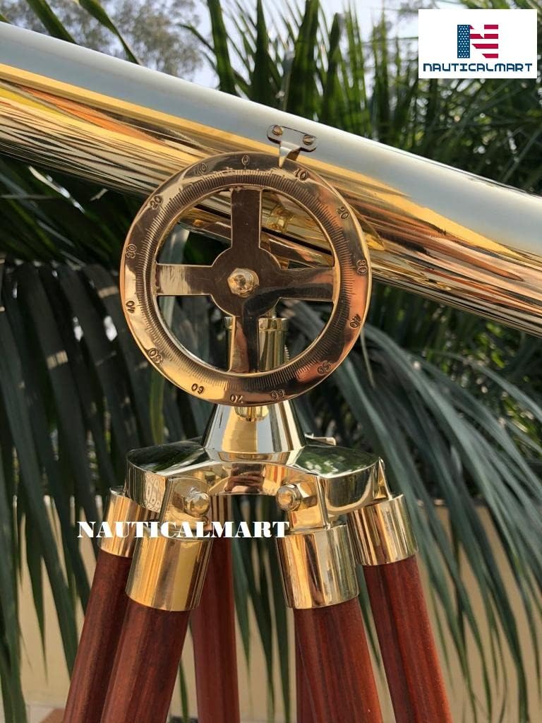 Nautical Telescope is a beautiful, 100% brass, refractor telescope mounted on a wooden tripod. This telescope is a fully functioning nautical masterpiece that adds class and sophistication to any room it's in. This is a perfect nautical gift for the explorer in your life. brass, which shines beautifully when placed in the sunlight