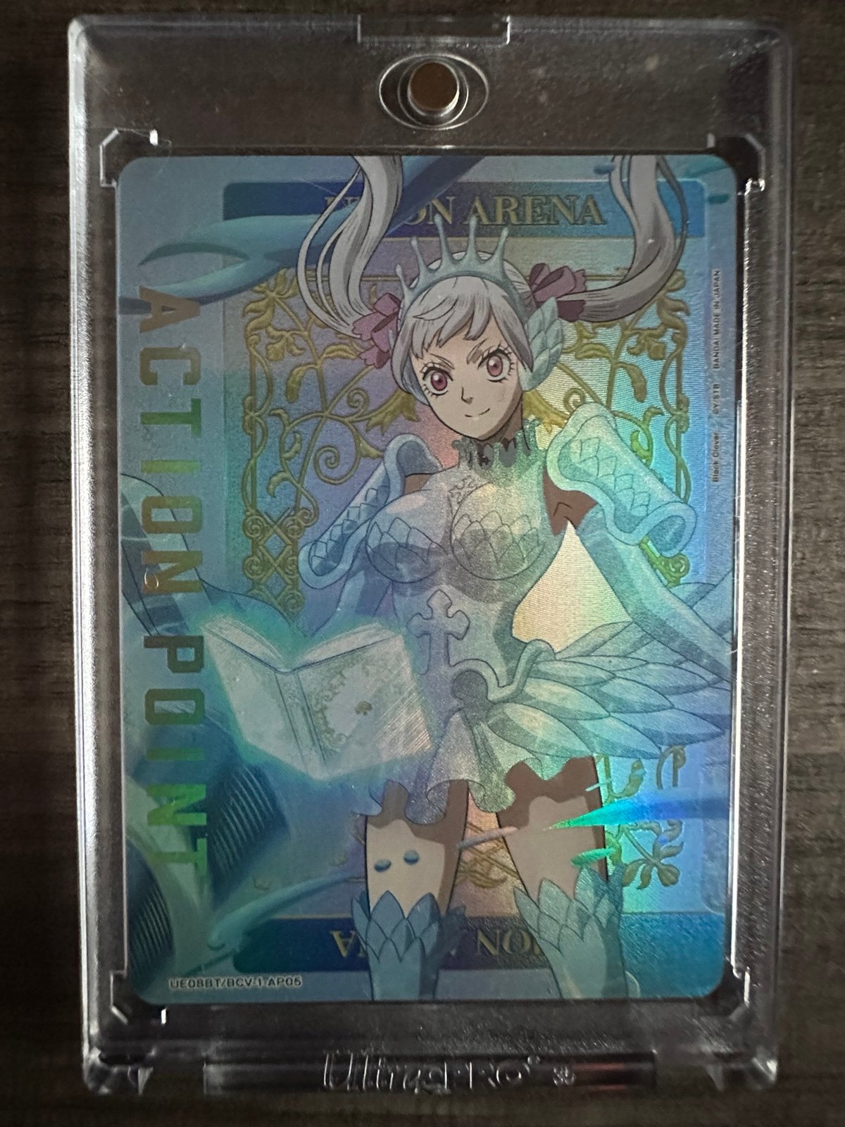 Never been used, or played with. Straight from opening the pack it came out of, To straight into a clear sleeve and then a zipped closed binder. It comes with an Ultra Pro hard clear magnet closed case.