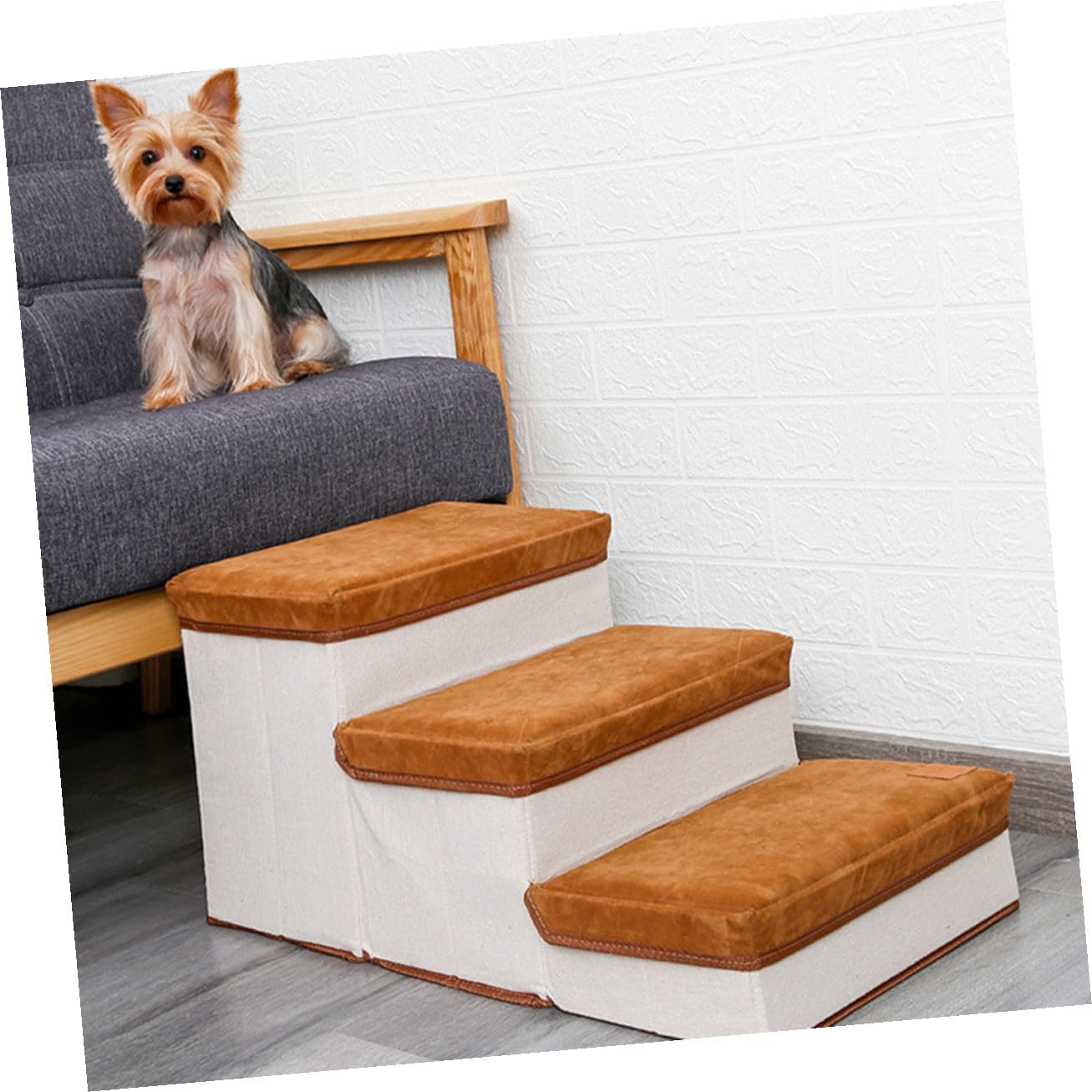 Package List 1 x pet stair Features - Size: About 60.00X35.00X30.00cm/23.58X13.76X11.79in Pet Stair - Color: Brown Stair for Puppies -Product Info:Dog stairs - Material: Lint and cotton cloth Pet Ladder - material with stable performance and Puppy Stair. - The pet step features style, so any home style can be perfectly integrated Pet Playing Stair. - It can be folded when not in use, so it does not take up space Dog Ladder. - At the same time, it can be a storage case Foldable Pet Stair. - The pet stair features the simple installation and convenient storage Pet Supplies.Goods InformationStorage Case Stair And its maximum load-bearing is 25KG.Pet Supplies Removable and washable, an anti-slip bottom makes these doggies stairs for small dogs very sturdy, recommended for smaller dogs, cats or puppies.Stair for Puppies The pet stairs can help puppies and small dogs to freely get on and off the bed, sofa, etc