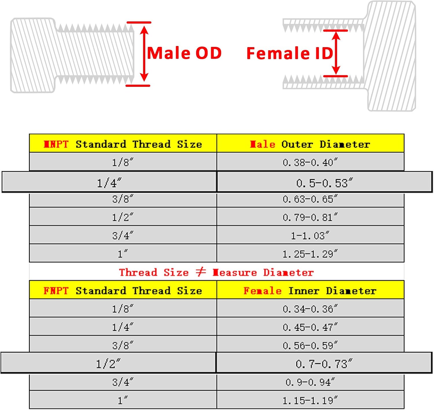 | Thread Size | 1/2" NPT Female x 1/4" NPT Male |