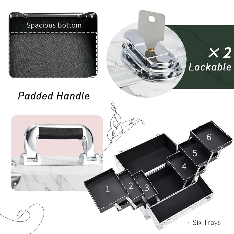 • Easily Portable and Lock: The makeup train case is in a portable size with a large non-slip handle. It is also lockable with key for privacy and security in case of traveling.