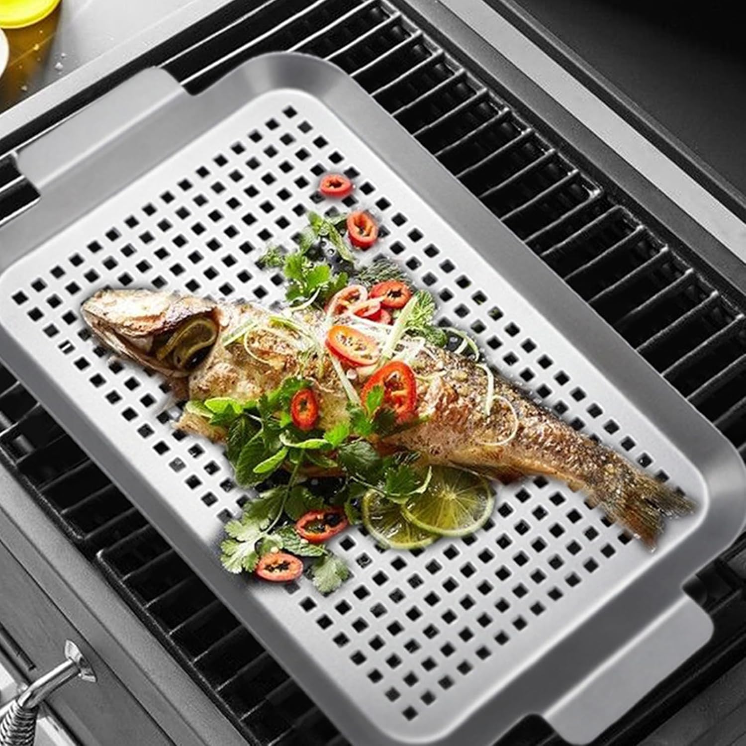 Functional Stainless Steel BBQ Grills Pan Set with Perforated Plate and Handle for Outdoor Grilling Vegetables FishFeatures:pleased grilling with our Grills Pan, crafted from stainless steel that resists rusts and ensures durability for countless BBQ.Feature a unique perforated design, these grills toppers allow for easily promoting cooking while ensuring even heat distribution for perfectly grilled vegetables, fish, meat, and seafood.Ideal for home cooks, barbecue enthusiasts, campers, and individuals seek to elevates their outdoor cooking Perfect for family gatherings, picnics, backyard parties, and various outdoor activity, these portable grilling basket is your essential accessory for flavorful barbecues.With easy to wash front and handle, these BBQ accessories enhances your grilling efficiency, making it a essential addition to your kitchen and outdoor utensils collection.Specifications:Component:Stainless SteelSmall Size:Approx.33x18.50cm/12.99x7.28inchesMiddle Size:approx.41.5x26CM/16.34x10.23inchesLarge Size:Approx.49x29CM/19.29x11.42inchesPackage Includes:1Pc Stainless Steel Grills PanNote:Please allow 1-2cm error due to manual measurement. Please make sure you do not mind before you bid.Due to the differences between different monitors, the picture may not reflect the actual color. Thanks!