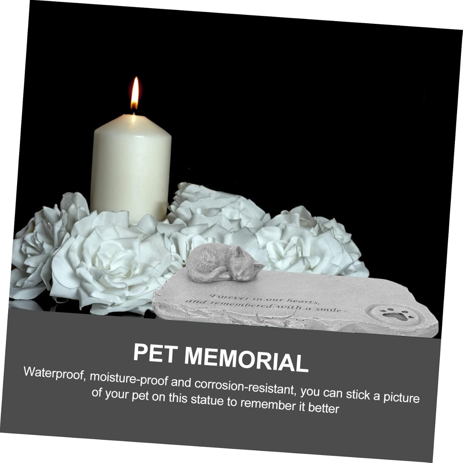 Package Include 1 x Pet Memorial Stone Features -Material: Resin tombstone adornment - This beautiful pet memorial stone helps a sad friend to commemorate their special cat memorial stone. - This product represents your eternal love for pets. A memorialize your beloved kitten design memorial stone. - to the surroundings, it becomes a beautiful garden accessory. Can also be used indoors cat memorial gravestone. - Express your sincere emotion. The pet memorial stone is a to express sympathy, comfort, remembrance decorative pet tombstone. - Manufactured with resin material, and to use pet memorial stone.Goods Informationcat dog tombstone This pet memorial stone can help a sad friend or lover to remember their loved furry one.kitten design memorial stone The pet memorial stone is designed with a lovely kitten, which is very creative and adorable, use it to express the memory and love for pet