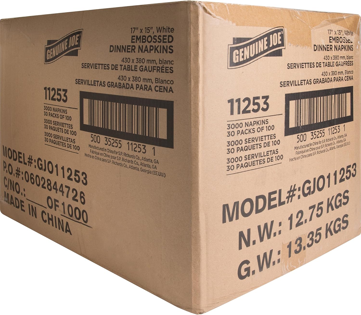 Embossed dinner napkins are soft, consistent and versatile for a variety of your events. Two-ply, 1/8-fold design handles sticky messes with a soft touch. Large surface is folded to a more manageable, compact rectangle to sit neatly beside plates and under utensils. Paper material means they are disposable for easy cleanup.