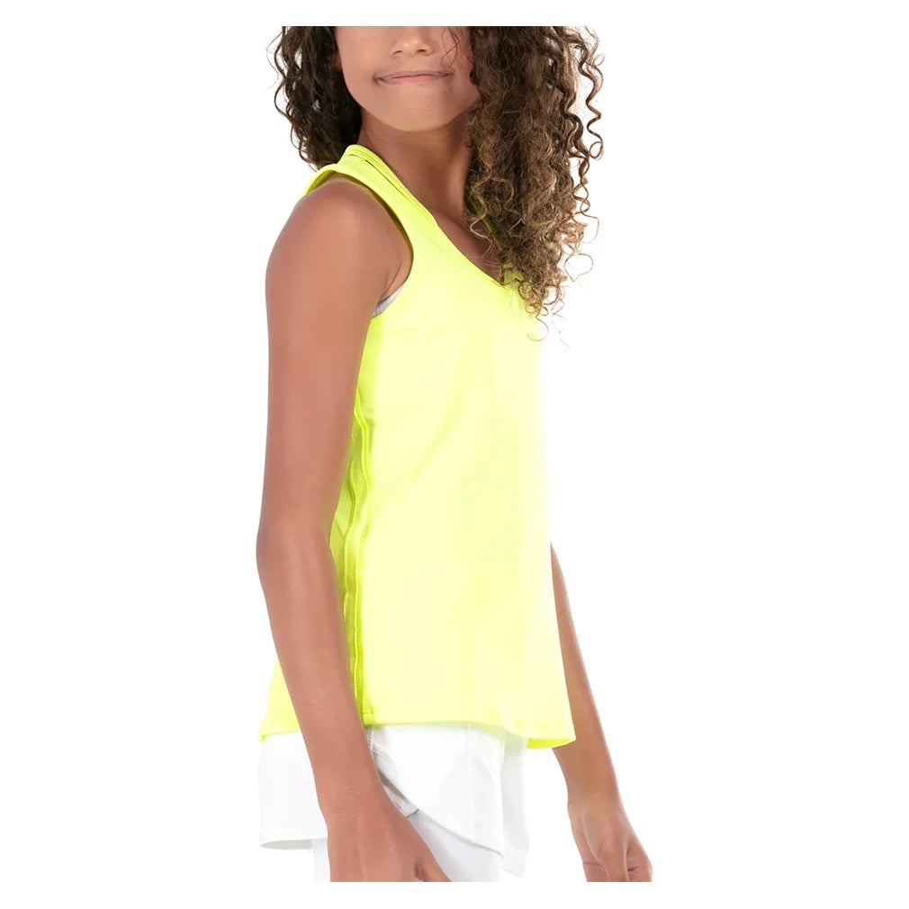 Amp up her style in the Lucky In Love Girls' V-Neck Cutout Tennis Tank in Pink. The cutout details at the neck elevate the classic tank to give her a trendy and modern look. She'll enjoy a free range of motion to perfect each shot with the sleeveless construction and stay dry every step of the way with moisture-wicking properties. Pair this with the Lucky In Love Girls' Match Point Tennis Short for a statement-making full look!