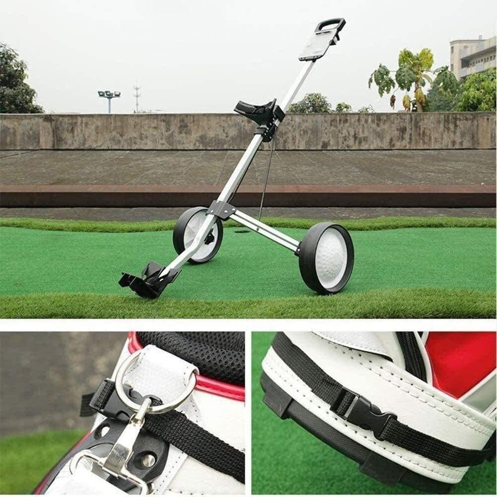 Golf carts, ideal golf accessories for men and women. Suitable for golf carts, golf cart accessories and men's and women's golf clubs, this foldable golf cart is also equipped with a ball wheel, which can run smoothly on any terrain. Just gently pull to engage and release.Parameter:Material: Aluminum alloy material, strong and light. The wheels are available in black and white, and the warehouse ships randomly!Specifications: 26 * 23.2 * 88cmNet weight: 2.8kgGross weight: 3.3kgUse: Can be folded