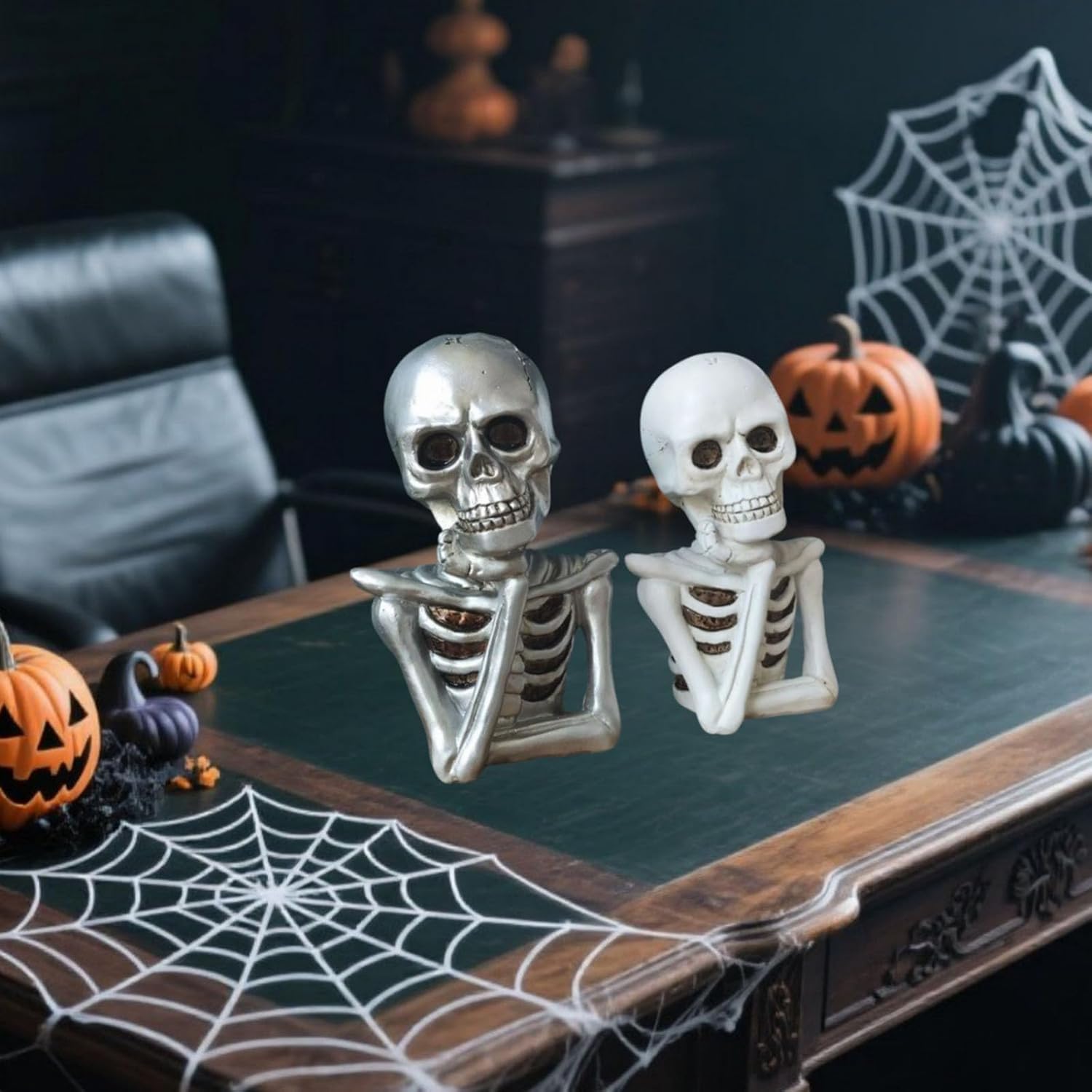 Gothics Skeletons Statue Set For Halloweens Party Decorations Detailed Ribcage Design Resin Craft 2PiecesFeatures: This 2piece set of intricately sculpted skeleton bust statues features contrasting silver and white finishes, from resin with realistic bone texture and anatomical detail for striking Halloween decorations or year round gothics home accent.These hauntingly detailed skull showcase hollow eye sockets, textured ribcage designs, and precisely carveds teeth for authentic macabres aesthetic.for horror enthusiasts, collectors of dark decoration, and homeowners seeking to elevateds their space with eerie yet sophisticated Halloween party supplies and gothics interior accent.Perfect for creating spine chilling displays on mantels, bookshelves, or dining tables during Halloween festivities, or as permanent conversation starting decoration in horror themed room and haunteds house setups.These sturdy resin skeleton busts arrive ready to display, requiring not assembly while maintaining their hauntingly beautiful appearance through multiple season of use.Specifications: Materials: ResinSize: 18x12x8.5cmPackage Includes: 2Pcs Halloween Skull Head DecorationNote: Please allow 0-1cm error due to manual measurement. make sure you not mind before bid.Due to the differences between different monitors, the Pictures may not reflect the actual of the item.