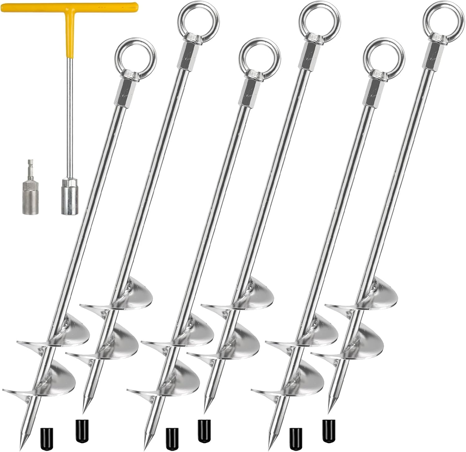 • Premium Heavy Duty Construction: The kit includes 8 x ground anchors heavy duty, 1 x T-wrench, and 1 x drill adapter. These ground anchors screw in are made of high-quality solid steel with a chrome-plated finish for durability. Rust- and corrosion-resistant, they withstand harsh outdoor conditions and ensure years of reliable outdoor use