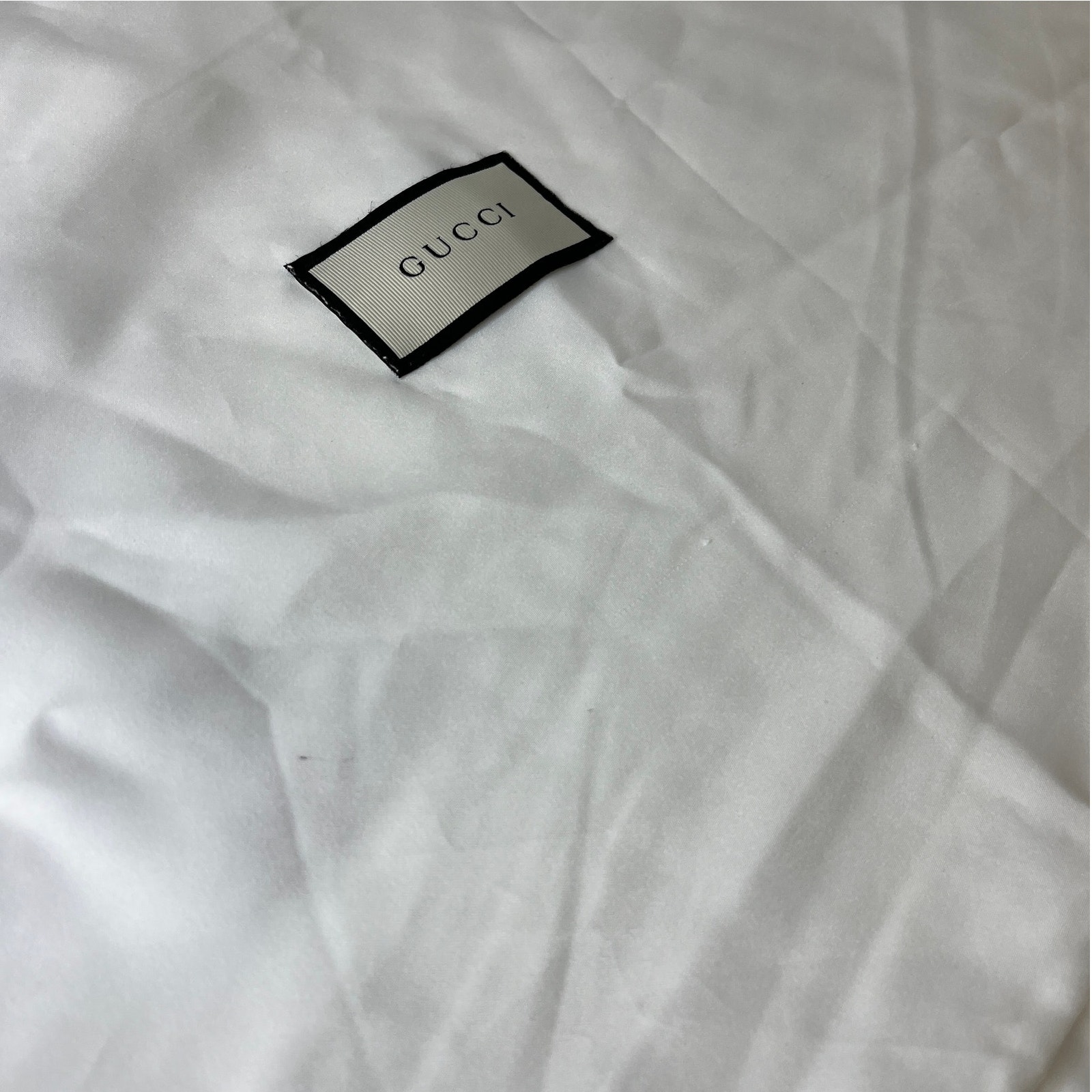 Very small marks as shown in the last photo, you can wash this on gentle to remove them, and air dry then lightly steam out the wrinkles. But not really necessary as they're not very noticeable. See my other listings for more Gucci bags.