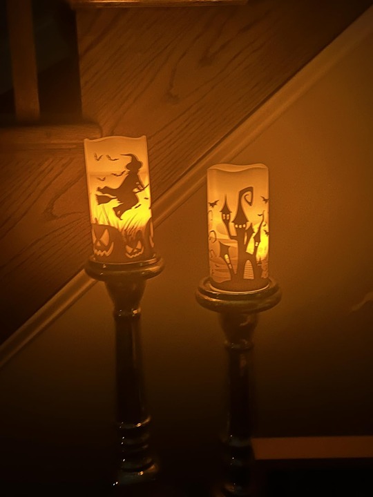 [Halloween Decor Indoor]: Our Halloween flameless candles made by real wax with LED flickering, Castle, Witch and Bats decal adds festival atmosphere in your room, great gifts for friends and kids