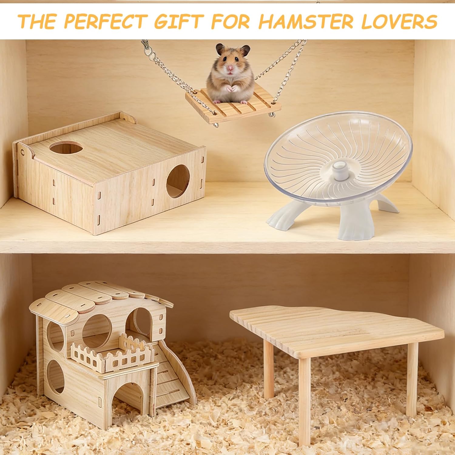 Features: Transform your furry friend’s habitat into a paradise with our Hamster Toys Set—a complete bundle of joy designed for hamsters, rats, guinea pigs, and small pets! This set delivers endless enrichment while promoting dental health, exercise, and mental stimulation. Every piece is engineered for safety, durability, and daily fun! Specifications: Material:Plastic, Wood Color: AS Shown In The Picture Package includes: 1 x Hamster Seesaw 1 x Hamster Running Wheel 1 x Hamster Swing 1 x Hamster Wooden House 1 x Hamster enclosure 1 x Hamster platform 1 x Hamster Water Dispenser 1 x Hamster water bottle Notes: For manual measurement, please allow slight errors in size. The color may have a slight difference due to different screen displays.