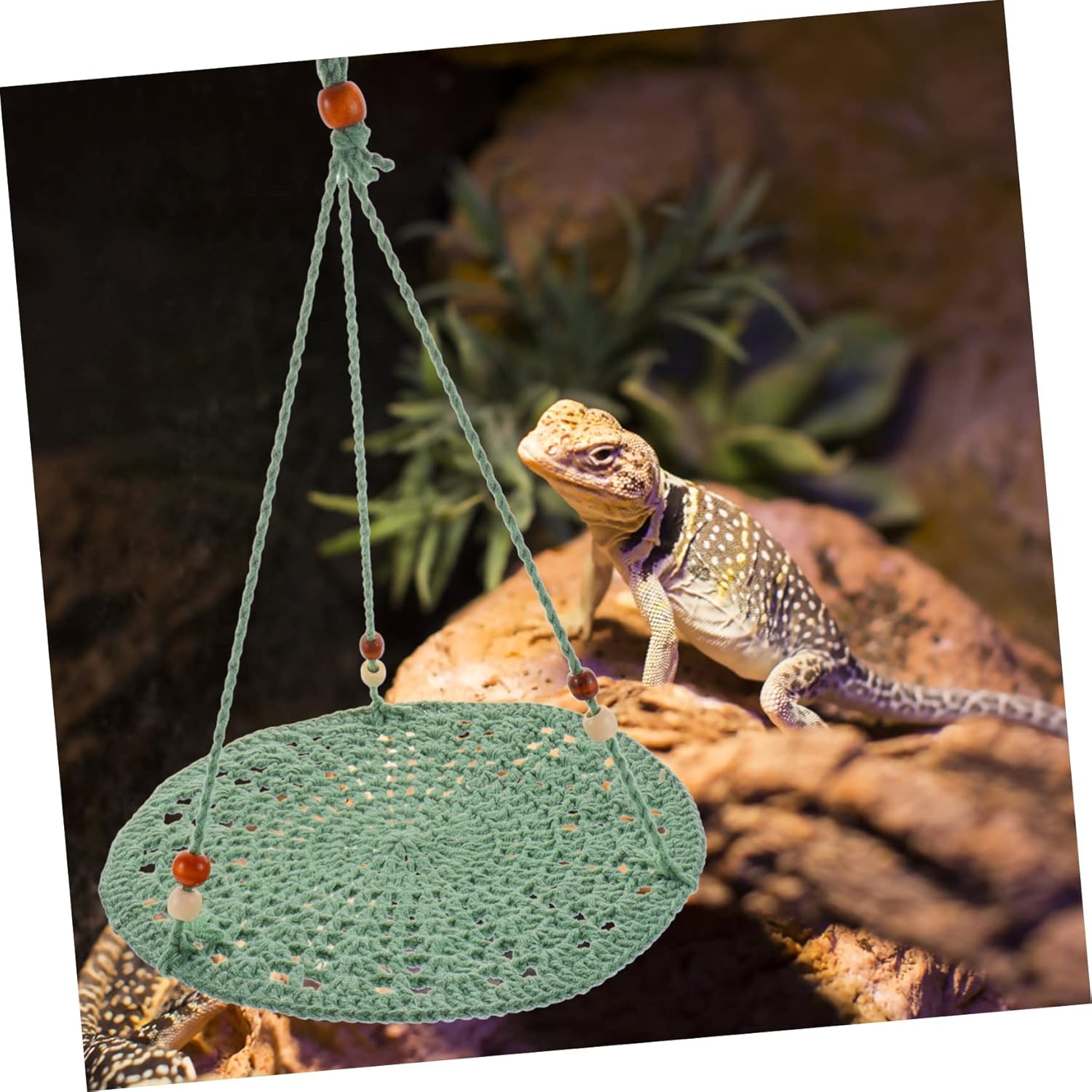 Package List 3 x Reptile Hammock Characteristics - Color: Green cage -Material:Cotton Rope bearded - Size: 25.00X25.00X38.00cm/9.82X9.82X14.93in gecko - Made from wear- and high-grade cotton rope material, which can use for a long time hermit crab hammock. - Washable, easy to and maintain, fast drying, quality. It's a good toy for your Lizard. pets supplies - The Reptile Hammock is compact and lightweight, will not take up much space lizard hammock. - The Lizard Hammock can be a great toy that will bring much fun for reptiles pets small animals hanging. - Lizard Hammock can be washed, easy to and maintain, this is very quick to dry and in quality cat hammock.Goods Informationlizard hammock A for reptile pet to sleep.parakeet toy Hammocks can use vertical area to enlarge the living space of pets and provide fun and comfortable places for pets. Great Hammock for reptile to have fun.leopard gecko hammock Made of breathable and with good touch feeling.snake hammock Wear and dirty , easy to , , creative and generous