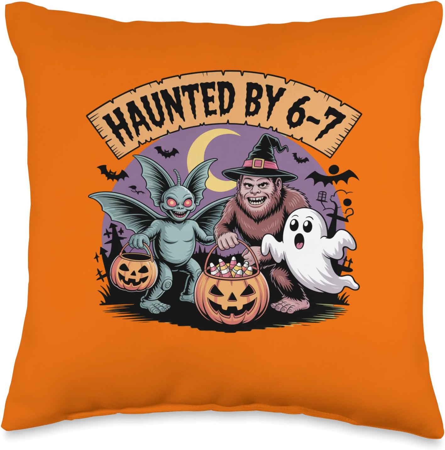 Haunted By 6 7 Bigfoot Alien Halloween is designed by Funny Meme Quotes Halloween Outfit. A funny Halloween Haunted by 6-7 spooky Halloween six seven meme design. For Gen Alpha Z trendy slang design. Perfect for kids teens or adults celebrating Halloween, this product is the perfect halloween costume, trick or treating for halloween parties.