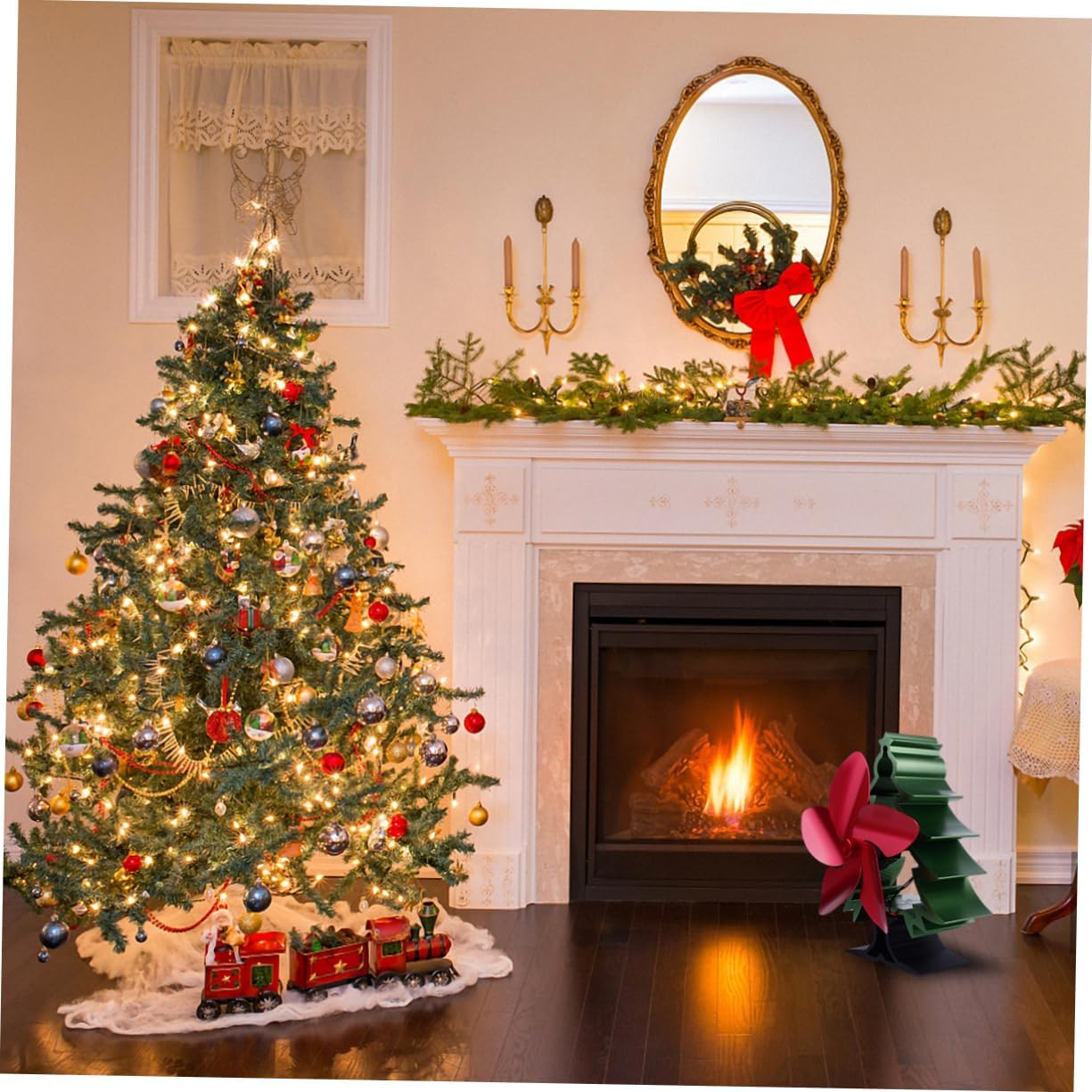 Package List 1 x fireplace fan Characteristics -Material:Metal 5 Blades Fan -Color:Red thermal fireplace fan -Size:13.30X10.00X18.00cm/5.23X3.93X7.07in Warm Air Fan - Made of materials, heat- and stove fan thermal. - Not so much air volume as electric fan, but enough to blow the hot air to the whole room Home Stove Fan. - Very quiet at work. Say goodbye to the loud noise of electric fans Log Burner. - Generate electricity by converting the heat of the fireplace or . No electricity is required Tree Shaped Fireplace Fan. - Creative Christmas tree shape, adding festive atmosphere, is a Christmas present for family and friends fireplace fan.Goods Descriptionthermal fireplace fan Can circulate heat throughout the room.Home Stove Fan This stove fan is powered by transforming heat into energy, without using any battery or electricity.Heat Powered Fan It is made from metal, which will not or corrode when the fan is getting hot.Christmas Fireplace Fan So it is and low energy consumption