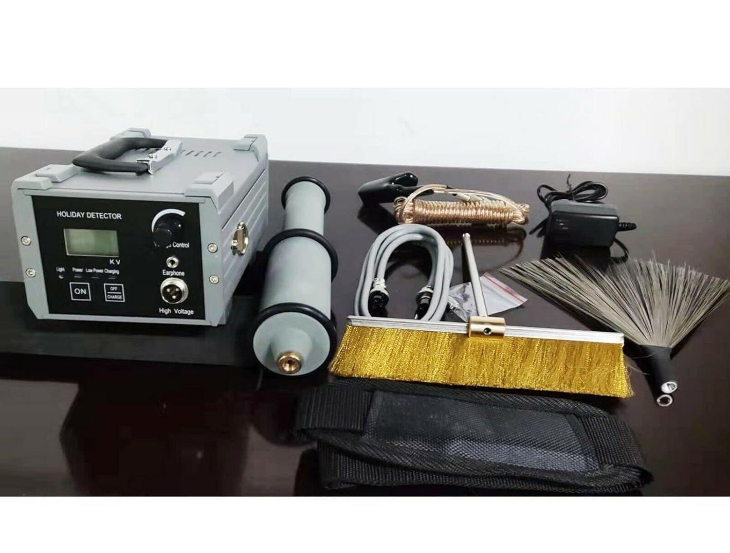 Introduction:◆The instrument can use different thicknesses of glass-lined, glass, steel, coal tar epoxy coatings and rubber linings◆The instrument lightweight, simple operation, stable and reliable, battery-powered◆It is particularly suitable for field operations, widely used in chemical , petroleum, rubber, ceramic industry, is used to detect metal corrosion coating quality tool.◆Holiday detector is a dedicated instrument for the detection of metal corrosion coating quality ,through a variety of coating the surface of a conductive substrate plus a certain amount of pulse voltage, such as the coating is too thin, metal or a leak pinhole leak,◆when the pulse voltage throught the coating surface produce a spark discharge gap formation breakdown, while a pulse is sent to the alarm circuit signal to the alarm sound the alarm, and thus achieve the purpose of detection of coating. Technical Specifications:◆1. Applicable detection thickness: 0.05 ~ 10mm(50μm~10mm)◆2. Output High-voltage: 0.6kv~30kv(600v~30000v) (stepless and continually adjustable)◆3. Direct indication of output high-voltage◆4. Battery: 12V/2800mA◆5. Power consumption: about 6W◆6. Volume of main detector: 220×130×88 mm◆7. Back light◆8. Instantaneous boot, and automatic shutdown◆9. 3–digit LCD displays output voltage, and with all-touch panel◆10. Alarm: Dual alarm with earphone and buzzer◆11. Packing List:■ host ×1■ high voltage probe ×1■ brush(brush / straight brush)×2■ connecting rod ×1■ headphones ×1■ strap ×1■ fuse ×2■ manual ×1■ warranty card ×1■ charger ×1■ grounding wire ×1■ grounding rod ×1■ packing box ×1