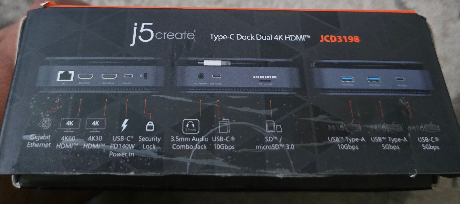 Selling a barely used j5create USB-C Dock (Model JCD542). Used once, in excellent condition. Includes original box and manual. Works perfectly. Supports dual 4K HDMI, USB ports, Ethernet, SD cards, and USB-C Power Delivery. Great for setting up dual monitors and charging devices from one USB-C cable. Plug & play for most MacBooks, Dell XPS, HP, Lenovo, and more. Ships fast and safe!