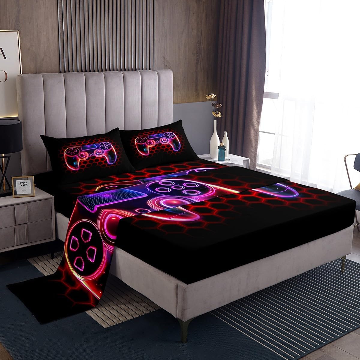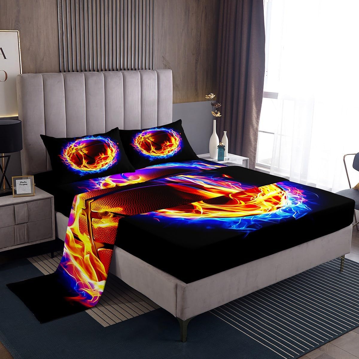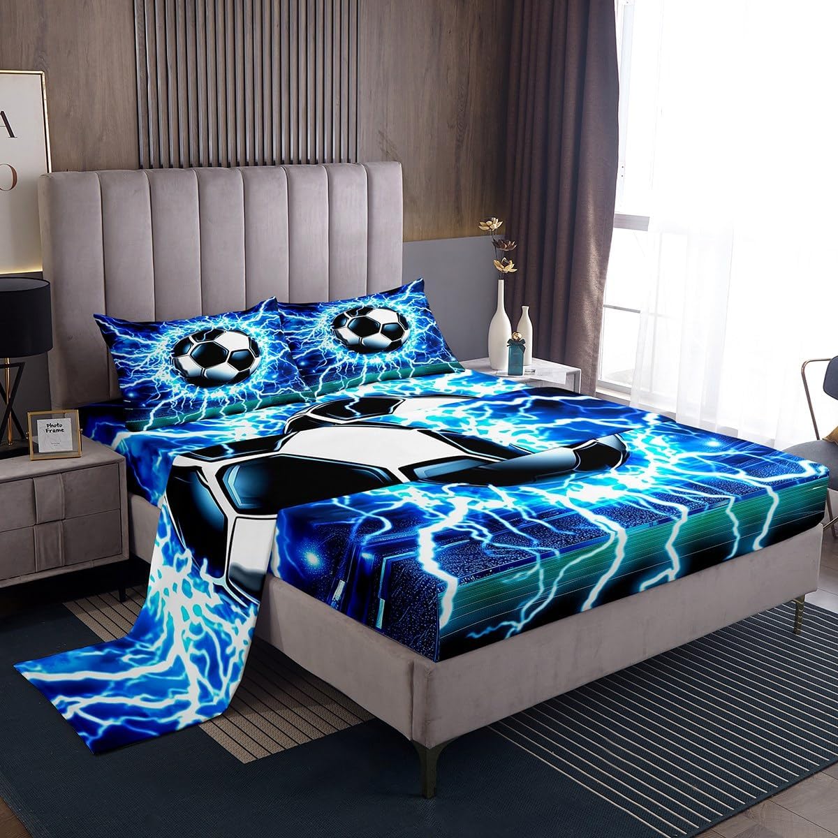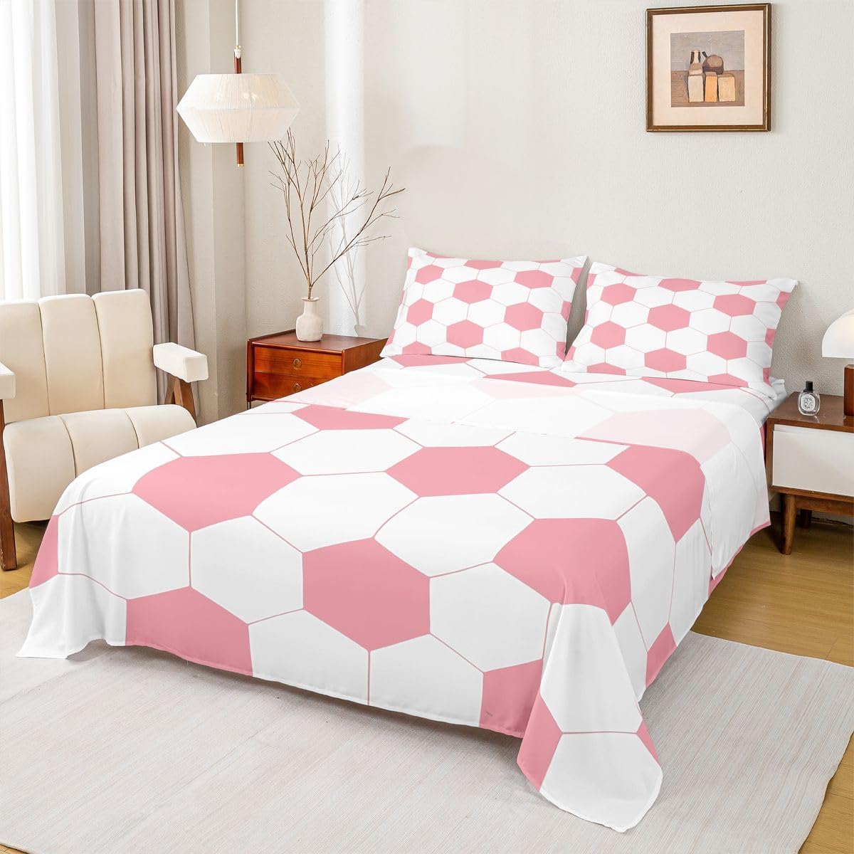 Our bed sheet is made of polyester fabric, lightweight and soft; stylish design is very suitable as room decoration for boys and girls; keep warm in winter and cool in summer; create a comfortable sleeping environment to make you fall asleep all night Range of size 1 twin fitted sheet 39 inch x 75 inch x 16 inch and 1 twin flat sheet 66 inch x 96 inch and 1 standard pillowcase 20 inch x 30 inch 1 full fitted sheet 54 inch x 75 inch x 16 inch and 1 full flat sheet 81 inch x 96 inch and 2 standard pillowcase 20 inch x 30 inch 1 queen fitted sheet 60 inch x 80 inch x 16 inch and 1 queen flat sheet 90 inch x 102 inch and 2 standard pillowcase 20 inch x 30 inch 1 king fitted sheet 78 inch x 80 inch x 16 inch and 1 king flat sheet 90 inch x 106 inch and 2 standard pillowcase 20 inch x 36 inch