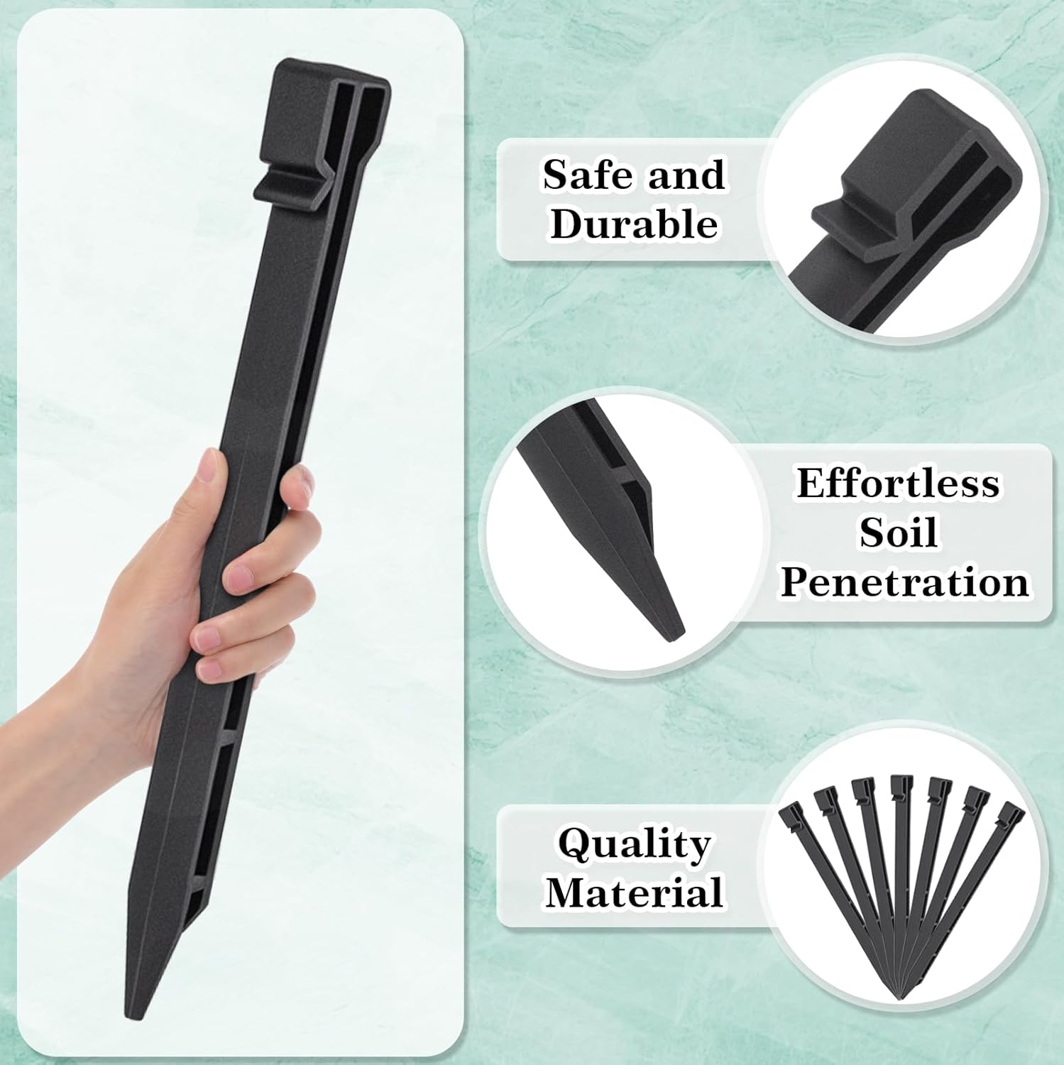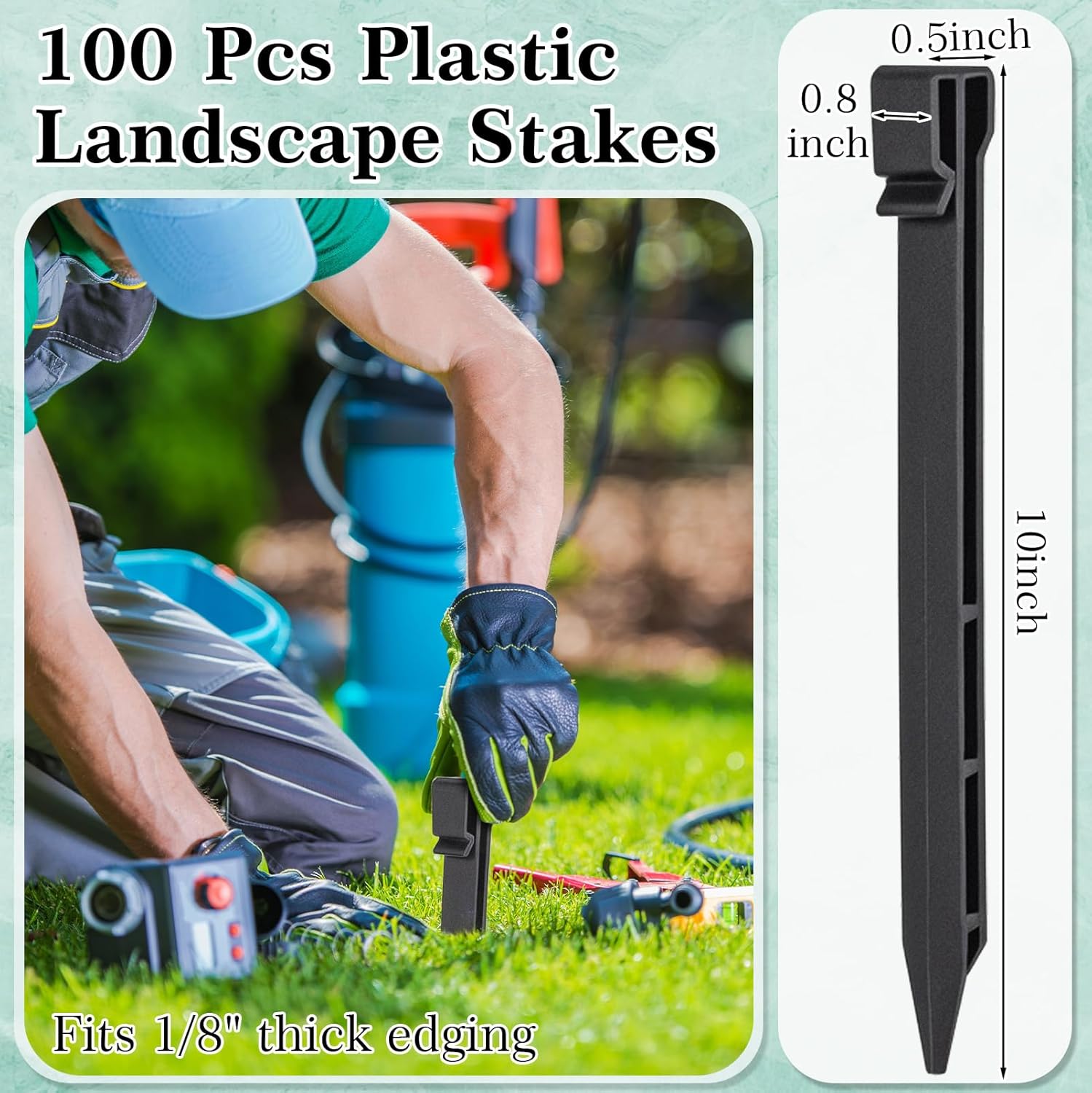 Features: Multiple scene usage The practical 10 inch length offers deep anchoring power, helping prevent fabric lifting and material displacement — common frustrations for gardeners and landscapers. Plus, with 100 stakes per pack, you'll be ready for anything from small backyard improvements to large-scale landscaping projects. Excellent supplement Simplify your lawn care and gardening tasks with reliable, easy-to-use landscape edging anchoring stakes that stand up to the demands of outdoor life. A great addition to your garden tools, whether you're a DIY weekend warrior or a seasoned landscaping professional. Specifications: Material: plastic Color: black Size: 10 inch Package includes: 100 x Plastic landscape edging anchoring stakes Notes: Manual measurement, please allow slight errors on size. The color may exist a slight difference due to different screen displays.