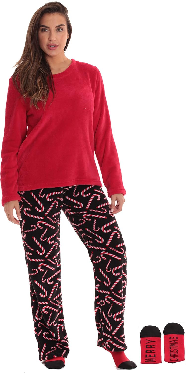 SUPREME SOFTNESS YOU’LL SIMPLY SAVOR Touch of Lux Complement that night’s sleep with sensational softness; make lounging an experience in incredible comfort; sample superior coziness that’s the stuff of sheepish smiles. These have to be some of our softest jammies! We’ve designed them using luxuriously coral fleece fabric consisting of 100% polyester that takes the comfort to a whole new level. And you get to reel in head-to-toe comfiness! Every pajama set comes with matching socks to keep your tootsies nice and toasty. Cuteness Meets Fun We believe good jammies are ones that inspire smiles. To spark one on your face, we’ve given the solid pajama tops a darling touch of color complemented by beautifully-printed sleeping pants. To spark a smile on everyone else, we’ve printed fun sayings on the socks’ soles that express your love for wine, or cocoa in cozy fashion. Whether you’re looking for Christmas pajamas to embrace the holiday spirit or lovely jammies you can rock anytime of the year, you’ll find the prints to tickle your fancy from our collection. Here are more reasons to love these xmas pajamas: - Handle well in the wash without losing their softness. - The pants have an elastic waist for a great fit. - Made with premium fabric and strong stitching for enhanced durability. - Available in S-3X to suit just about any size. - Choose between Buffalo plaid, Santa Clause, Christmas Lights, Candy Cane, Panda,and sweet snowflakes prints.> Click ‘Add to Cart’ now to slip into our softest pajamas with matching socks!