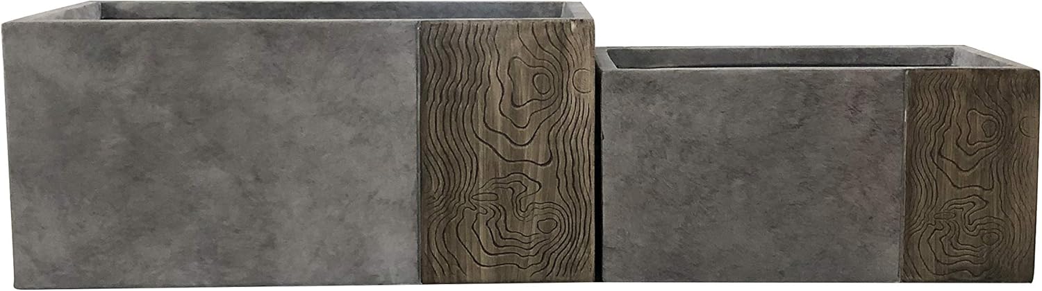 These elegant square planters have authentic concrete finish with visible pores make them beautiful contemporary pieces. This long rectangle planter brings beauty to every doorway, patio, deck, backyard scene, the possibilities are endless. A smooth finish with wood edge texture brings modern design elements in the environment. Made of Lightweight concrete through an manufacturing process. This composite material has no ruber, plastic, and steel. This material has all the advantages of concrete such as strength, durability, weather and damage resistance. Materials involve cement and weather-resistant fiberglass. This material has strong UV resistant ability and stay well in wind, rain, hot and cold season. By adding fiberclay material, planter is much easier to move around due to its lighter weight.