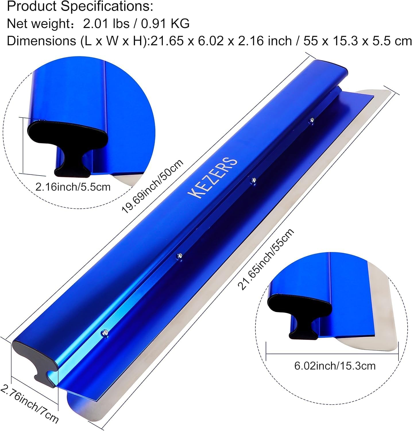 Achieve flawless drywall finishes with the KEZERS Drywall Skimming Blade and Extension Pole Combo. This set includes a 22” stainless steel blade built with aircraft-grade aluminum for smooth, lap-free mud control, and an adjustable 35”–81” stainless steel pole that easily adapts to most skimming blades. Lightweight and corrosion-resistant, the combo is designed for all-day comfort and professional results on ceilings, high walls, and tight spaces—making it ideal for both DIYers and pro contractors.