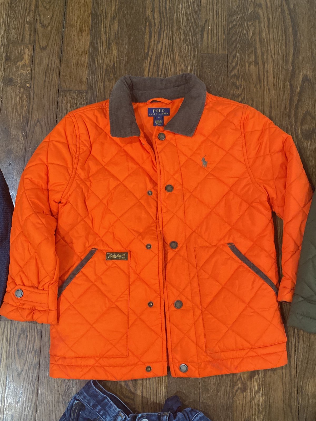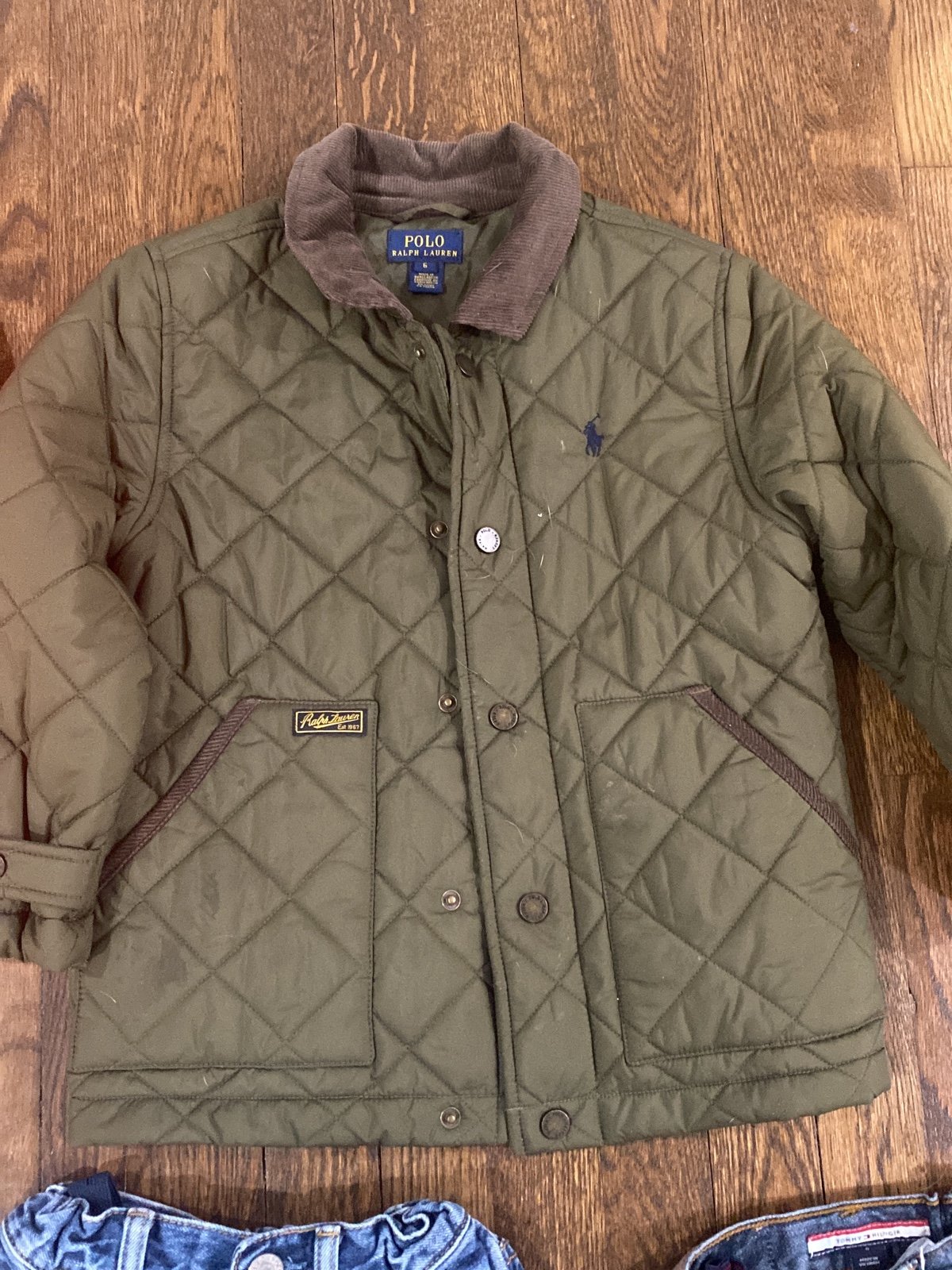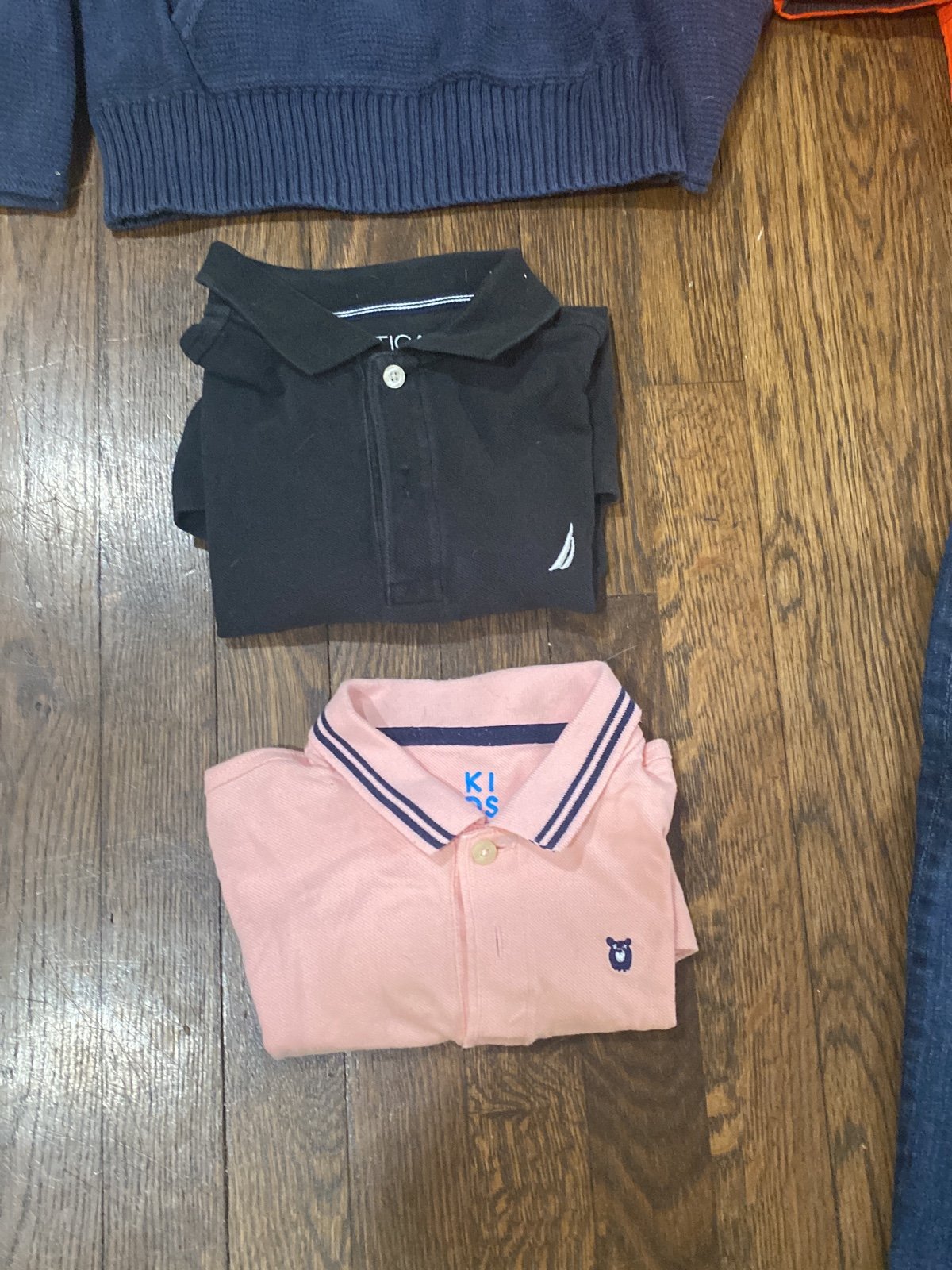 Kids clothes bundle size 6. 1 orange Polo Ralph Lauren Jacket size 6, 1 Green Polo Ralph Lauren Jacket size 6, 1 blue Gap sweater S, 2 collar shirts, 1 gap yellow jacket S, 3 gap jeans size 6, 1 Tommy Hilfiger jeans size 6. Smoke free home.